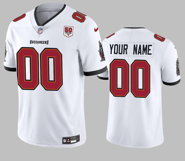 Tampa Bay Buccaneers Stitched Custom Limited NFL Jersey White 50th Anniversary Patch - Men's & Women's & Youth & Toddler