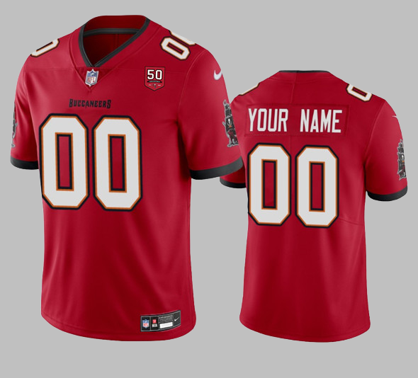 Tampa Bay Buccaneers Stitched Custom Limited NFL Jersey Red 50th Anniversary Patch - Men's & Women's & Youth & Toddler