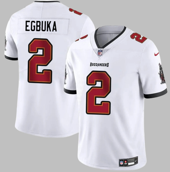Men's Tampa Bay Buccaneers #2 Emeka Egbuka Stitched Limited NFL Jersey White Red