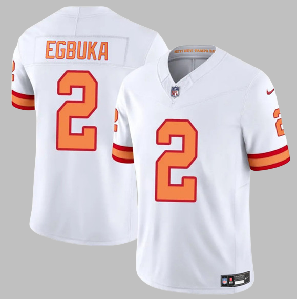 Men's Tampa Bay Buccaneers #2 Emeka Egbuka Stitched Limited NFL Jersey White Orange