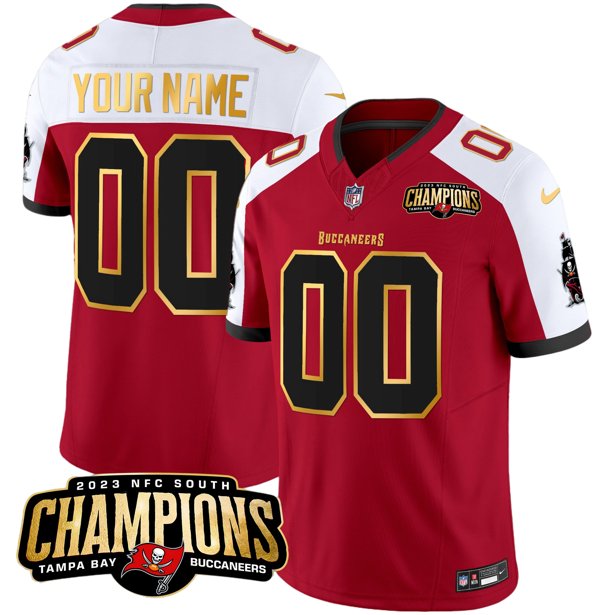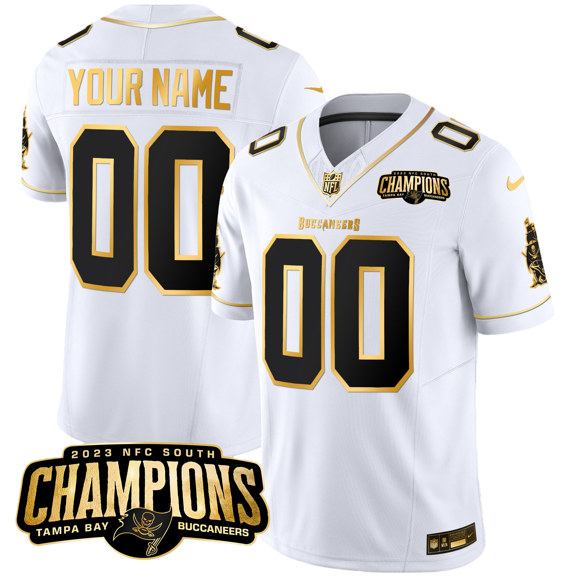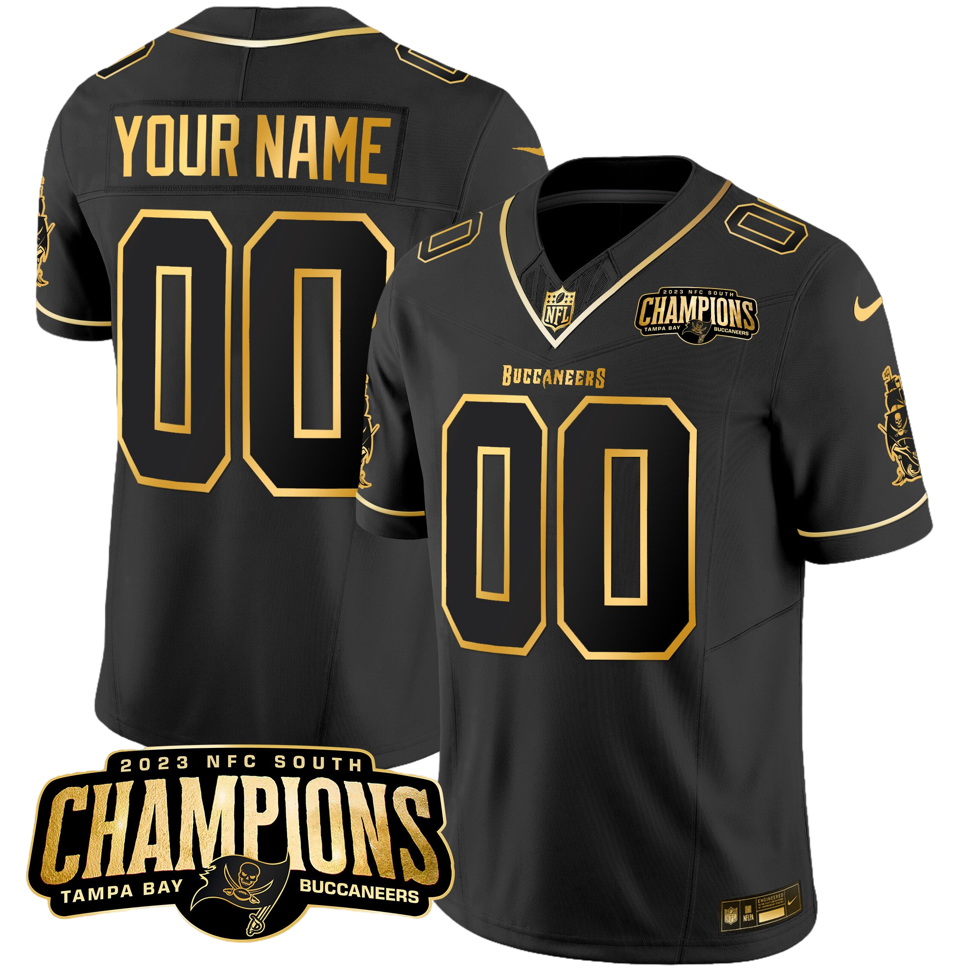 Tampa Bay Buccaneers 2023 NFC South Champions Patch Gold Trim Vapor Custom Jersey – All Stitched 2