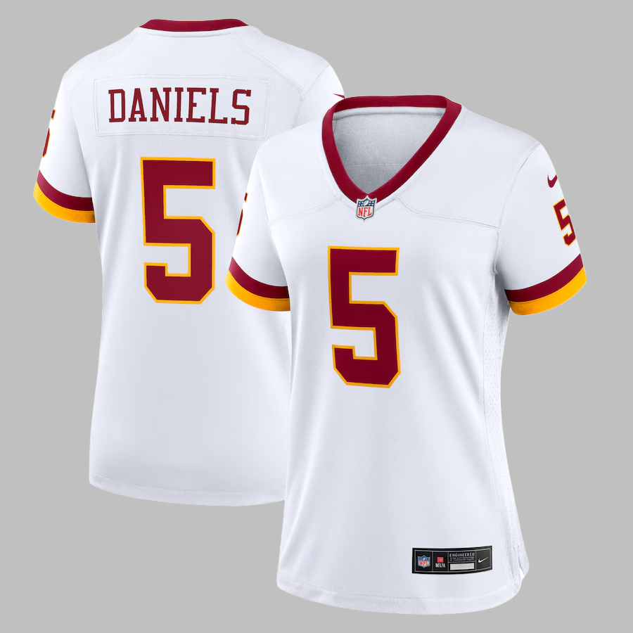 Women's Washington Commanders #5 Jayden Daniels All Stitched NFL White Super Bowl Era Jersey