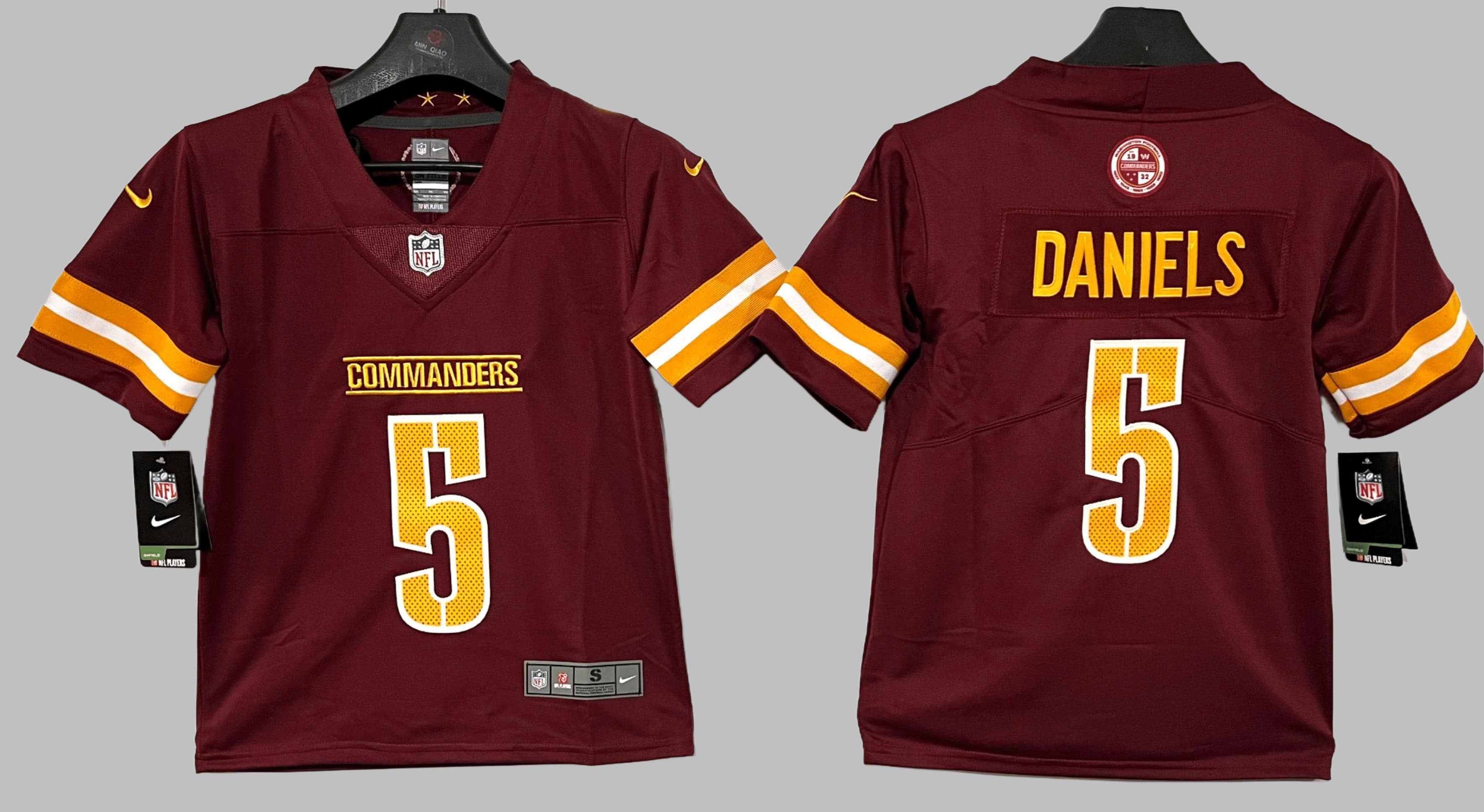 Youth Washington Commanders #5 Jayden Daniels Stitched Limited NFL Jersey Red