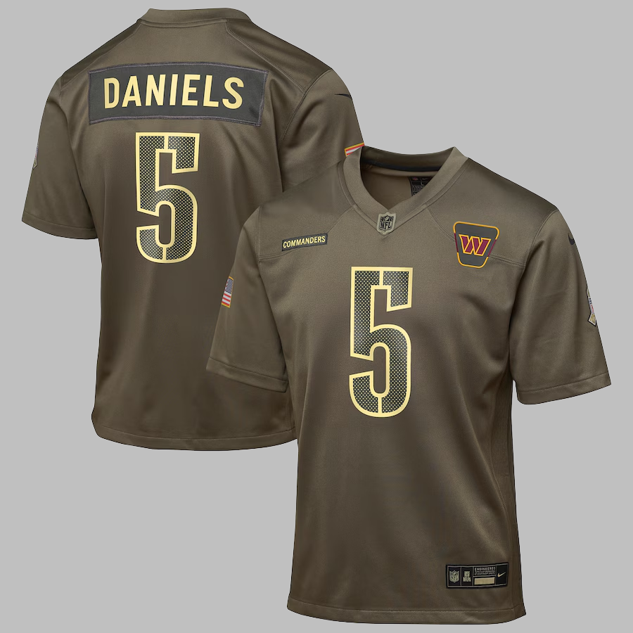Youth Washington Commanders #5 Jayden Daniels All Stitched NFL Olive 2025 Salute to Service Jersey