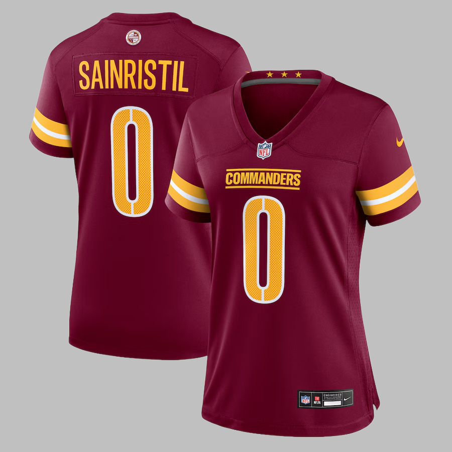 Women's Washington Commanders #0 Mike Sainristil All Stitched NFL Burgundy Jersey