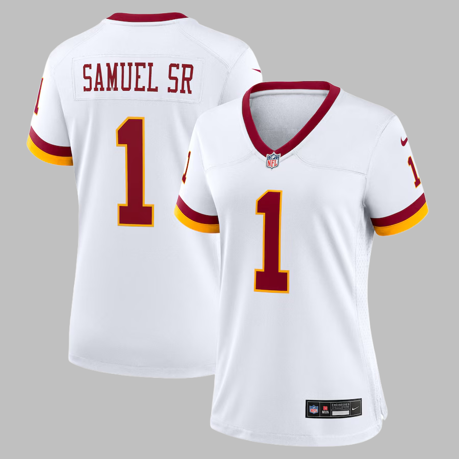 Women's Washington Commanders #1 Deebo Samuel Sr All Stitched NFL White Super Bowl Era Jersey