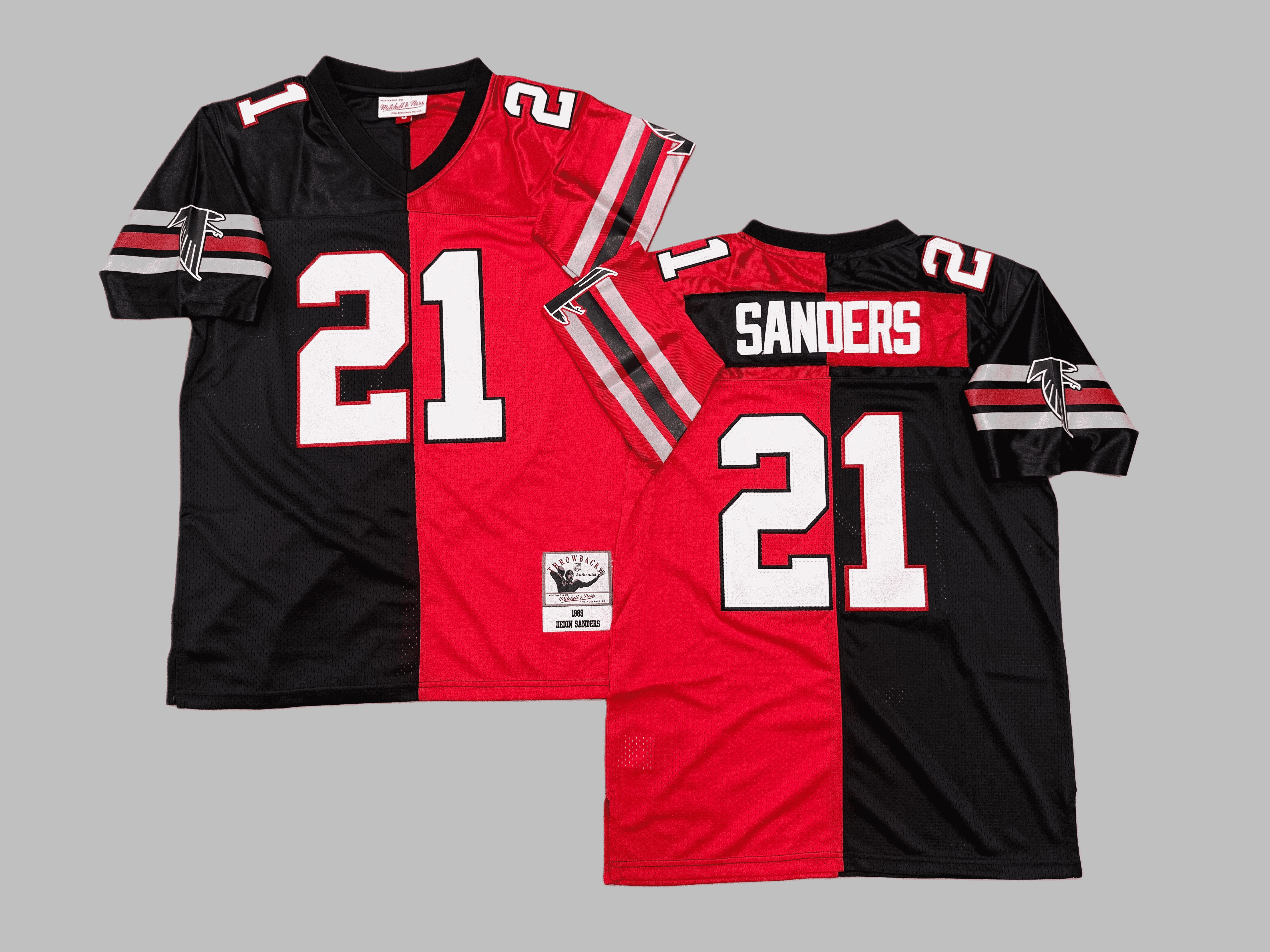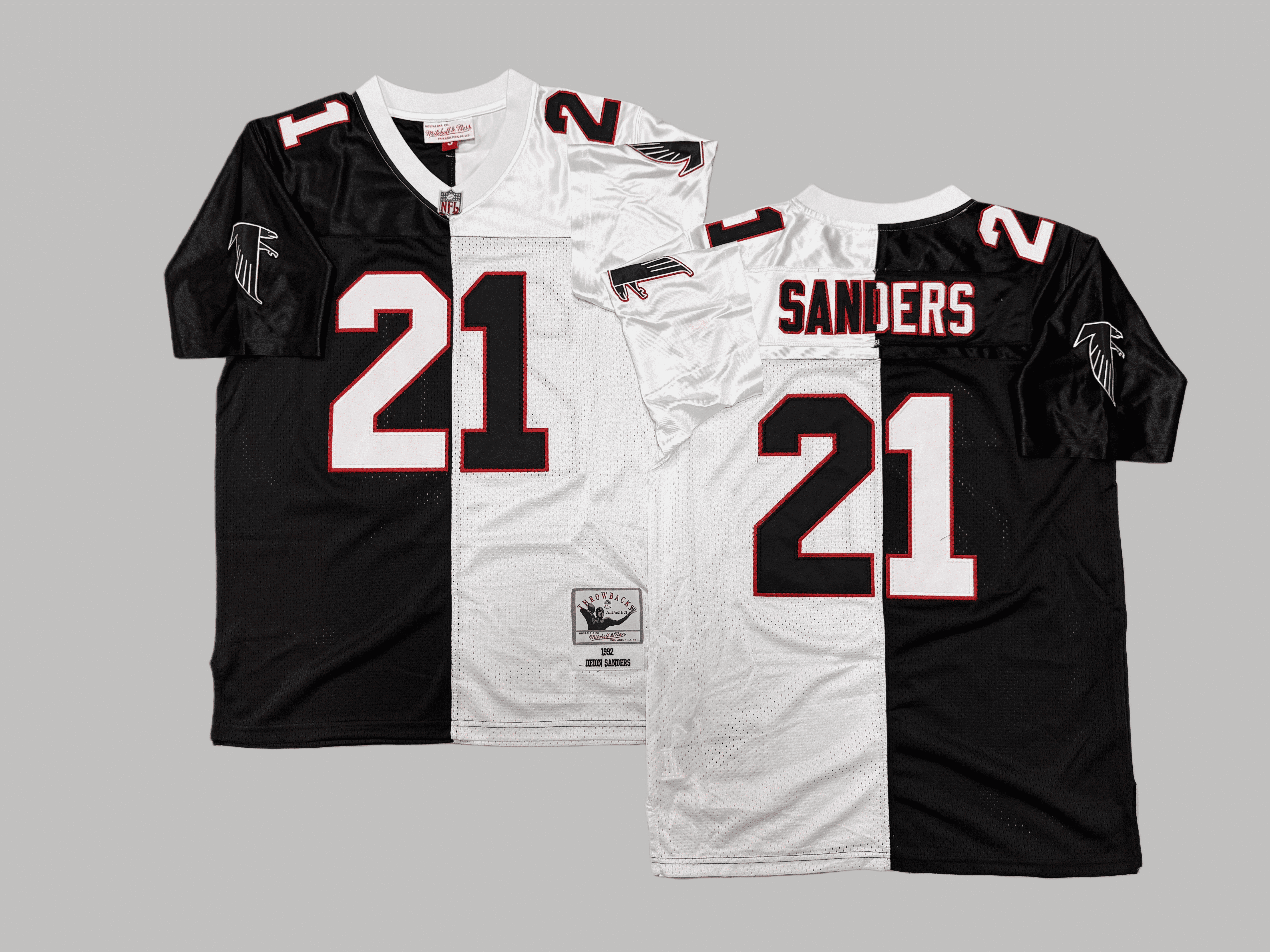 Men's & Youth Atlanta Falcons #21 Deion Sanders Mitchell & Ness Legacy Black White Split NFL Jersey