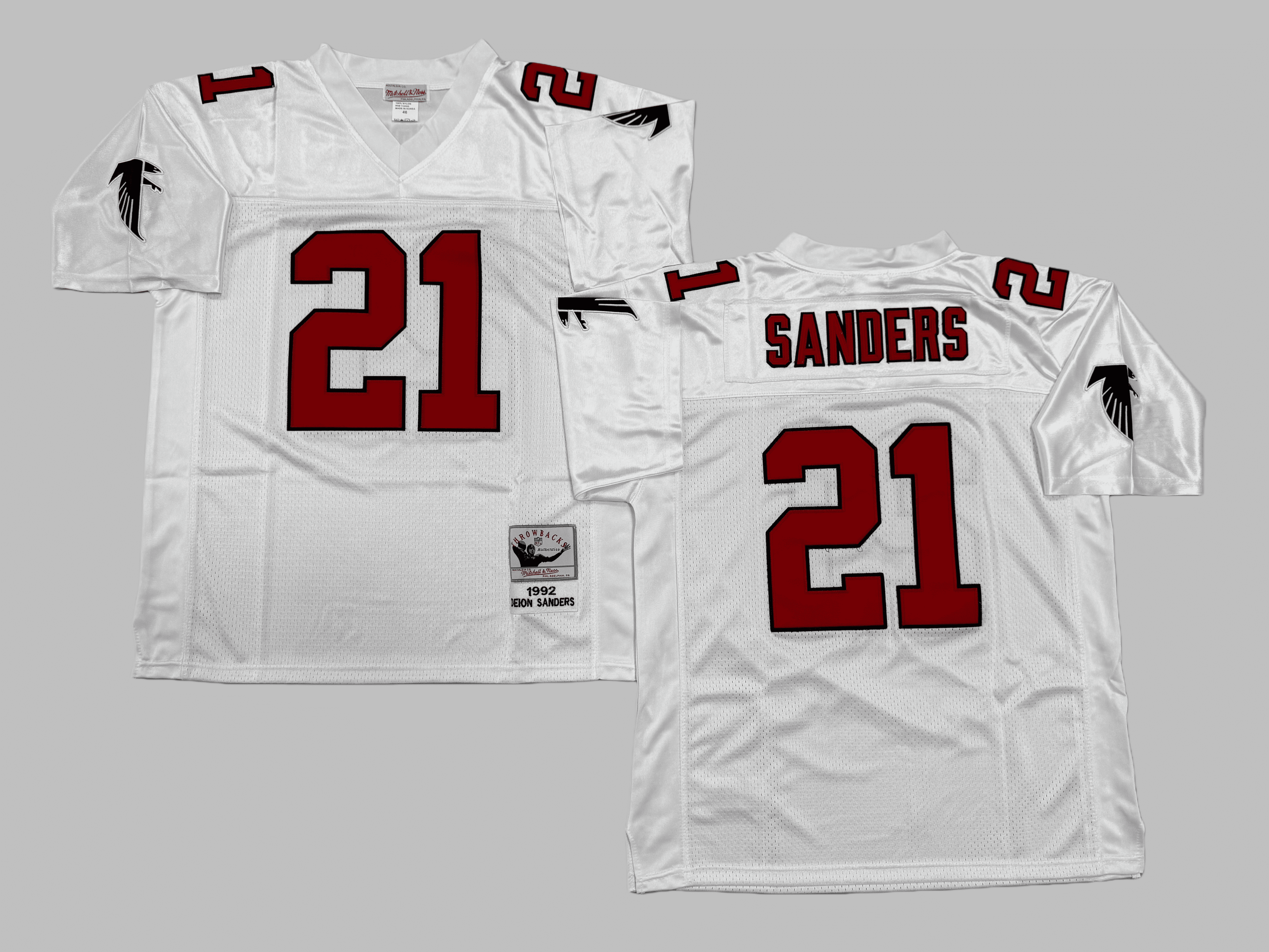 Men's & Youth Atlanta Falcons #21 Deion Sanders Mitchell & Ness White 1992 NFL Jersey