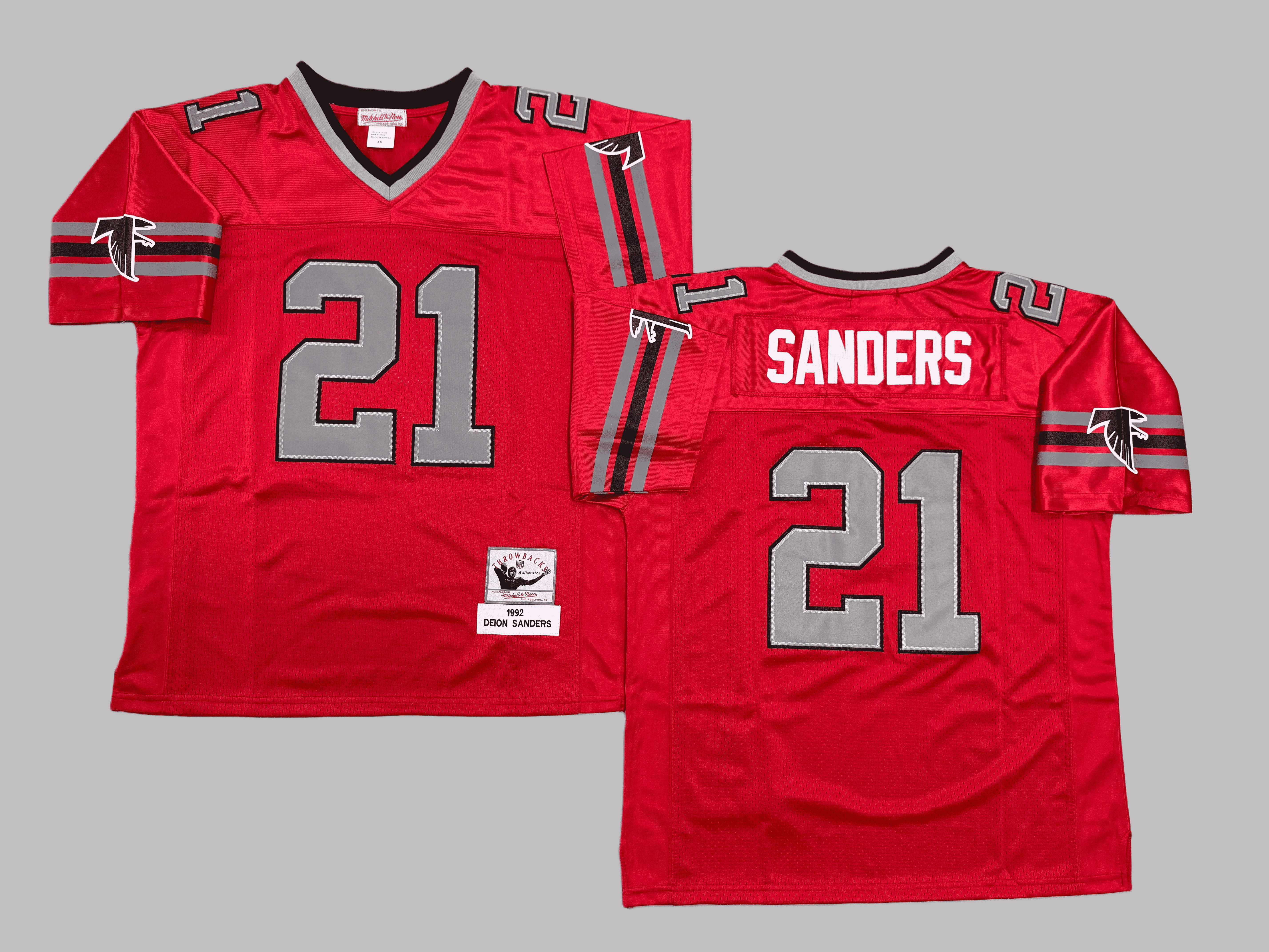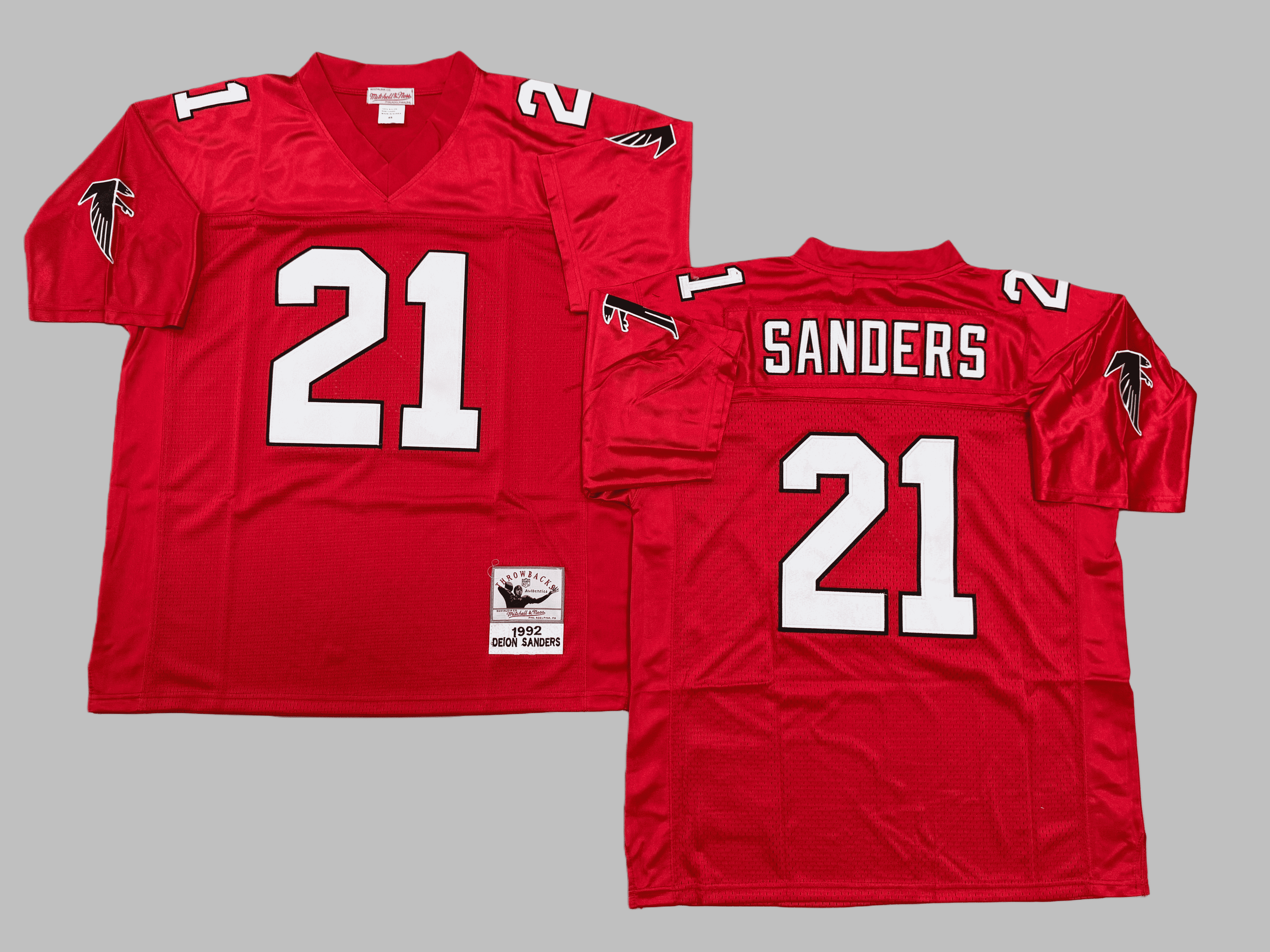 Men's & Youth Atlanta Falcons #21 Deion Sanders Mitchell & Ness Red 1992 Legacy Player NFL Jersey
