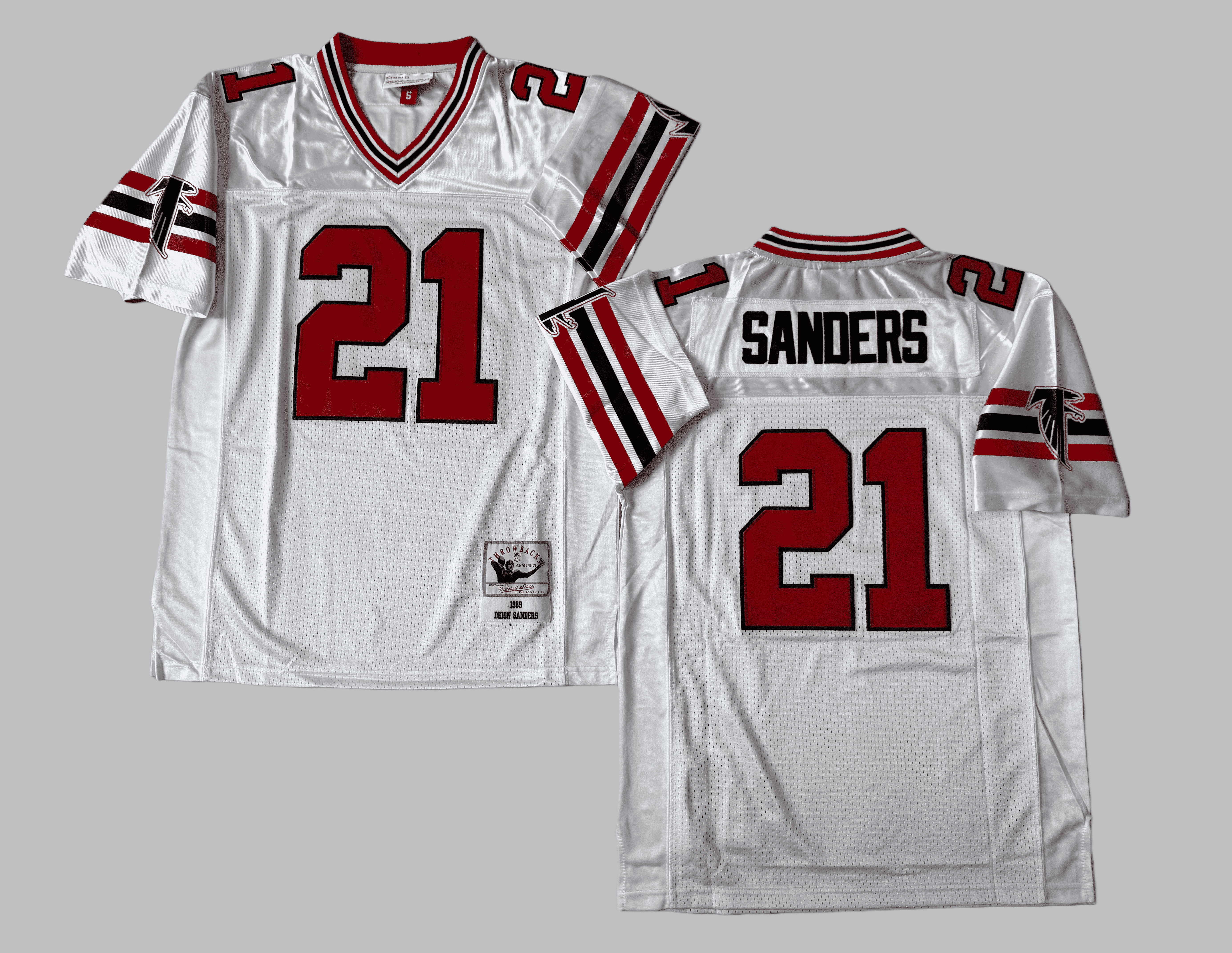 Men's & Youth Atlanta Falcons #21 Deion Sanders Mitchell & Ness White 1989 Authentic NFL Jersey
