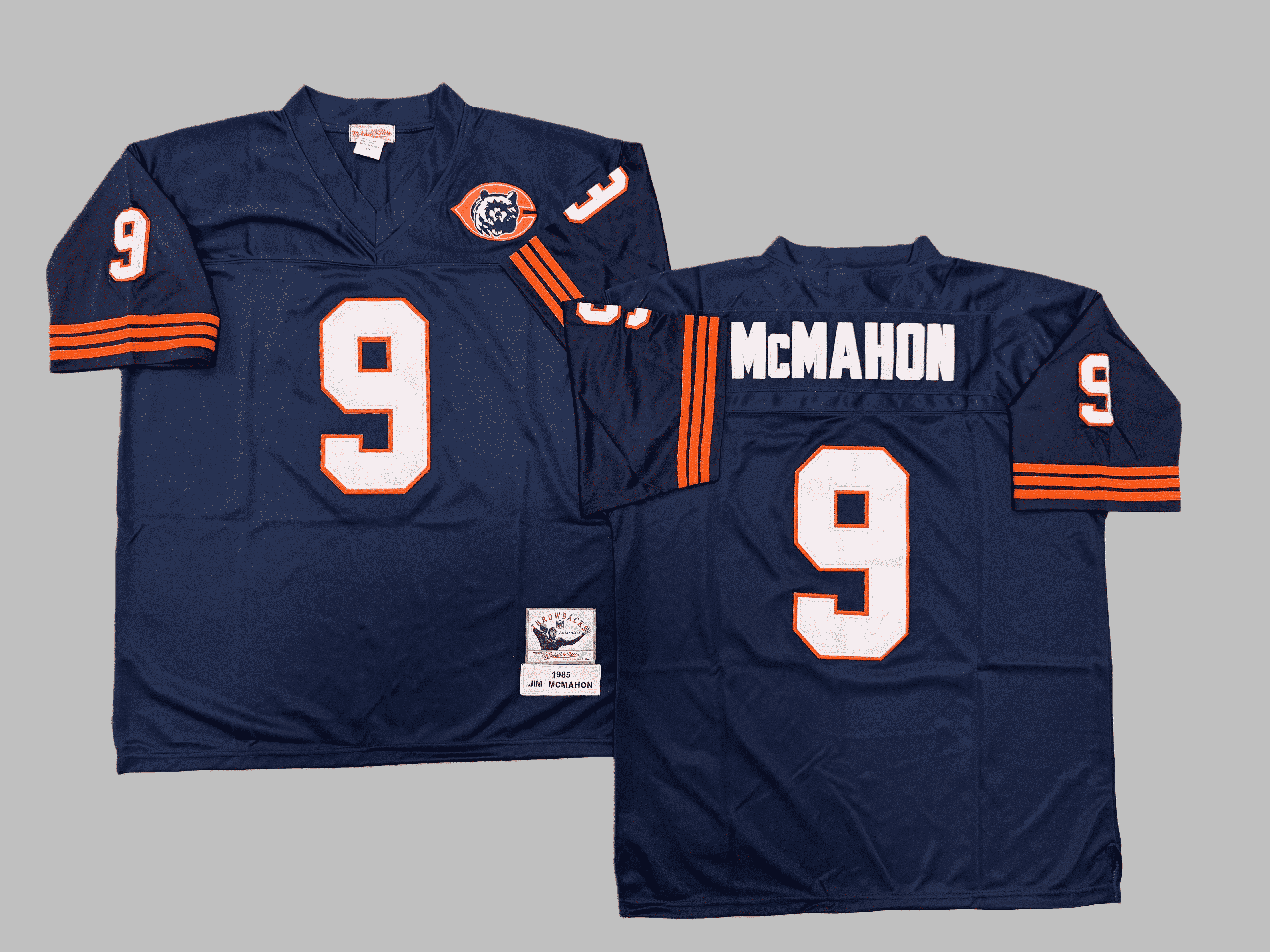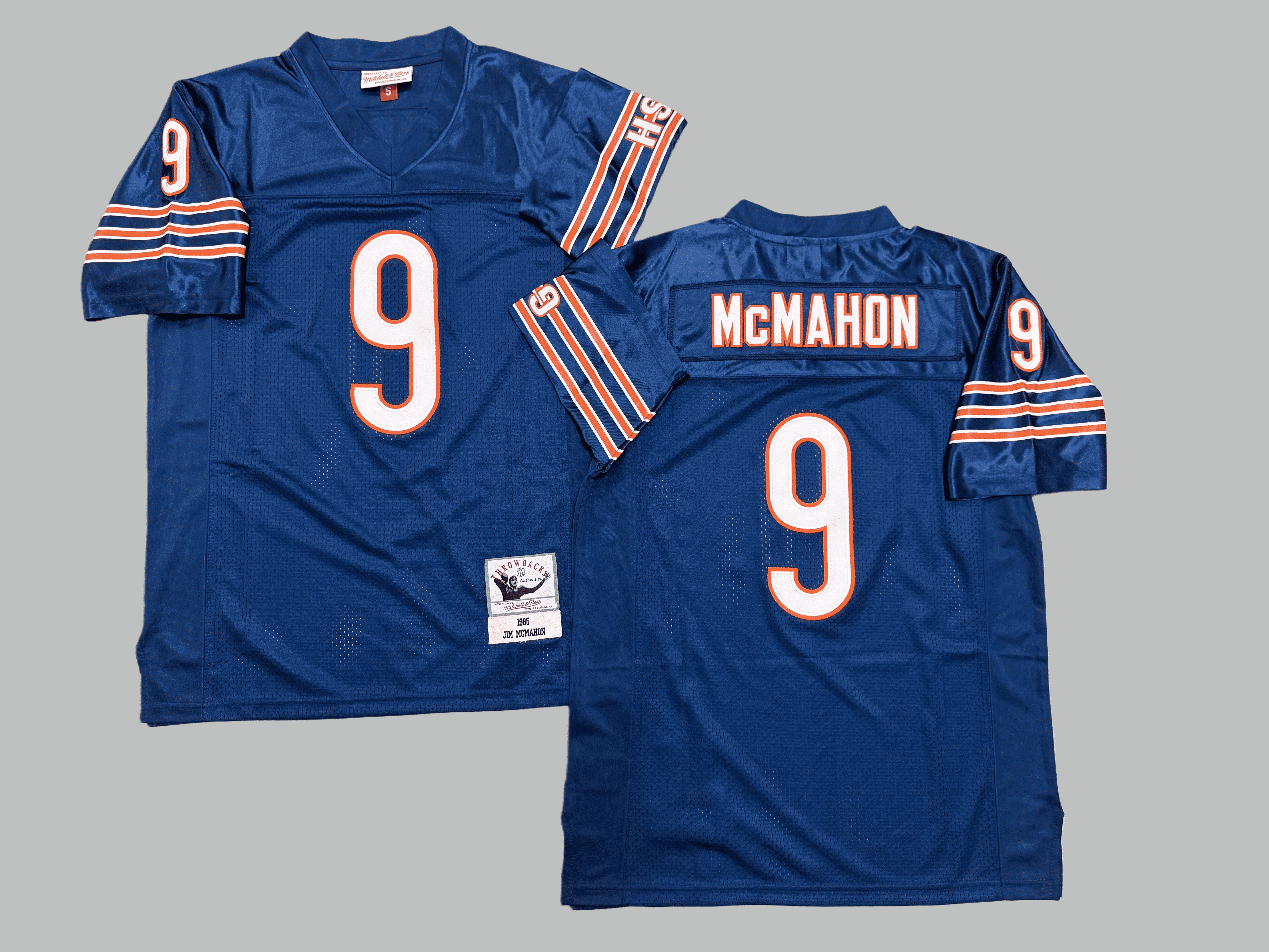 Men's & Youth Chicago Bears #9 Jim McMahon Navy Orange Split Mitchell & Ness Throwback NFL Jersey