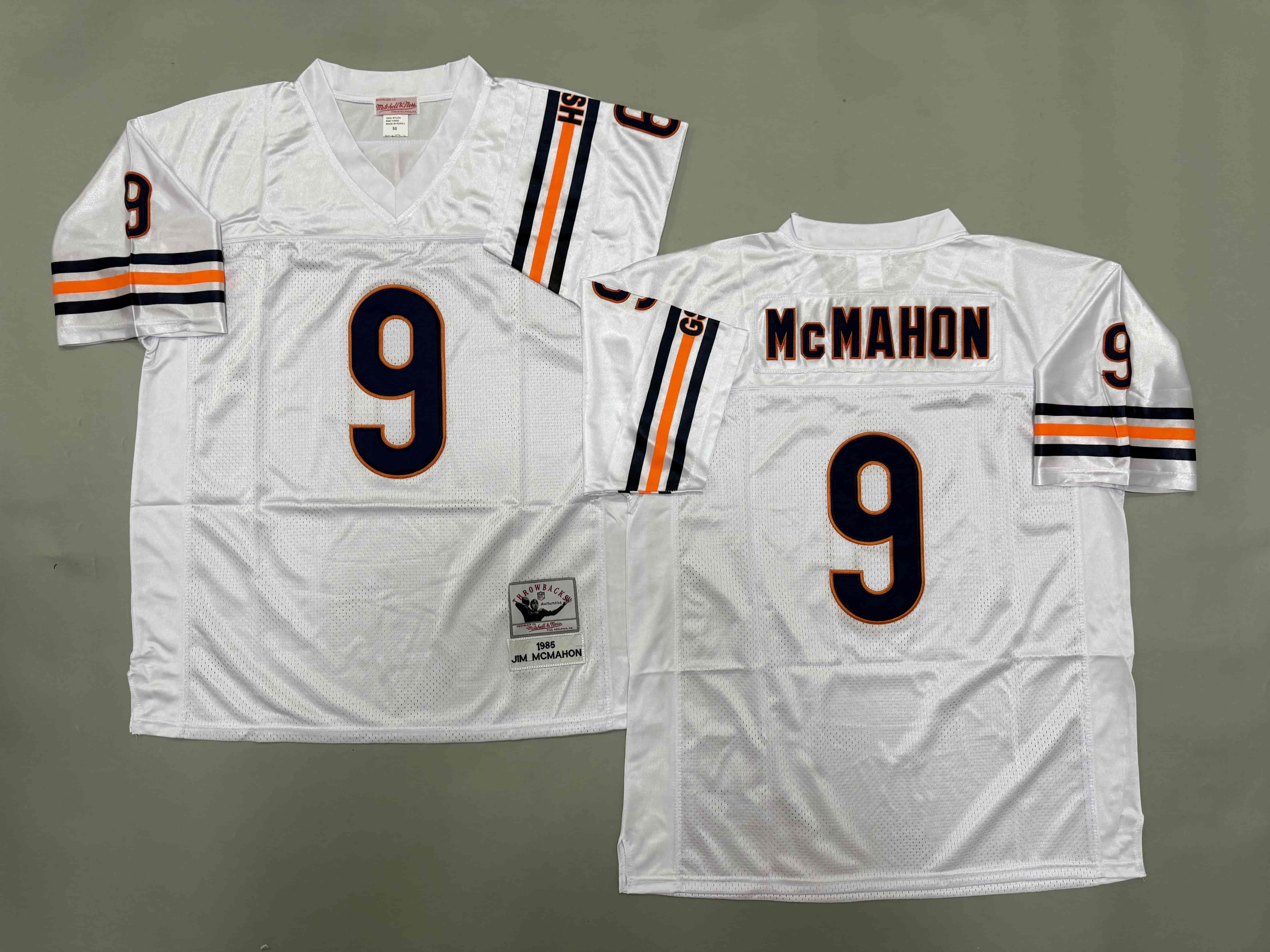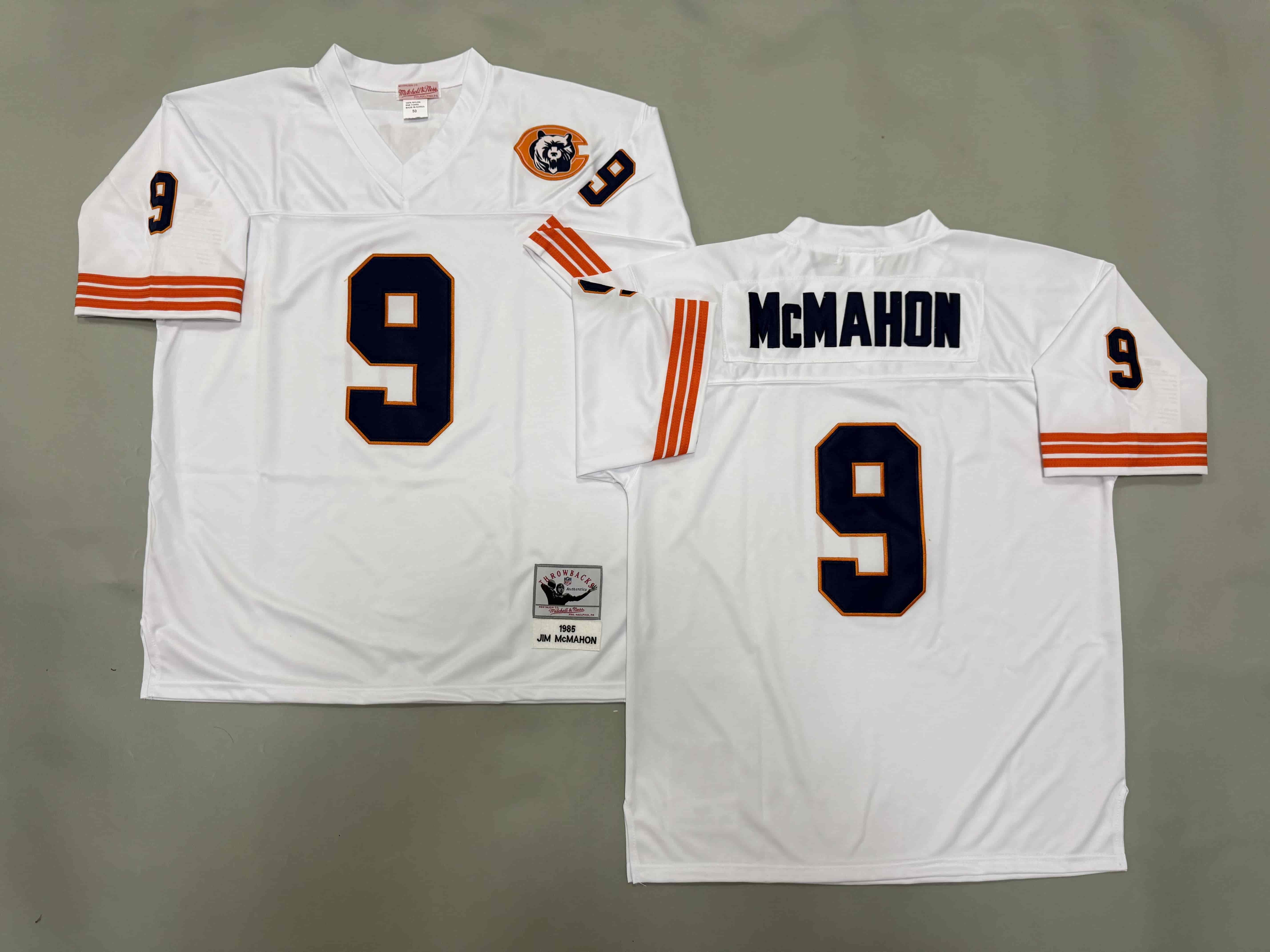 Men's & Youth Chicago Bears #9 Jim McMahon Mitchell & Ness Throwback NFL Jersey White Team Bear Patch