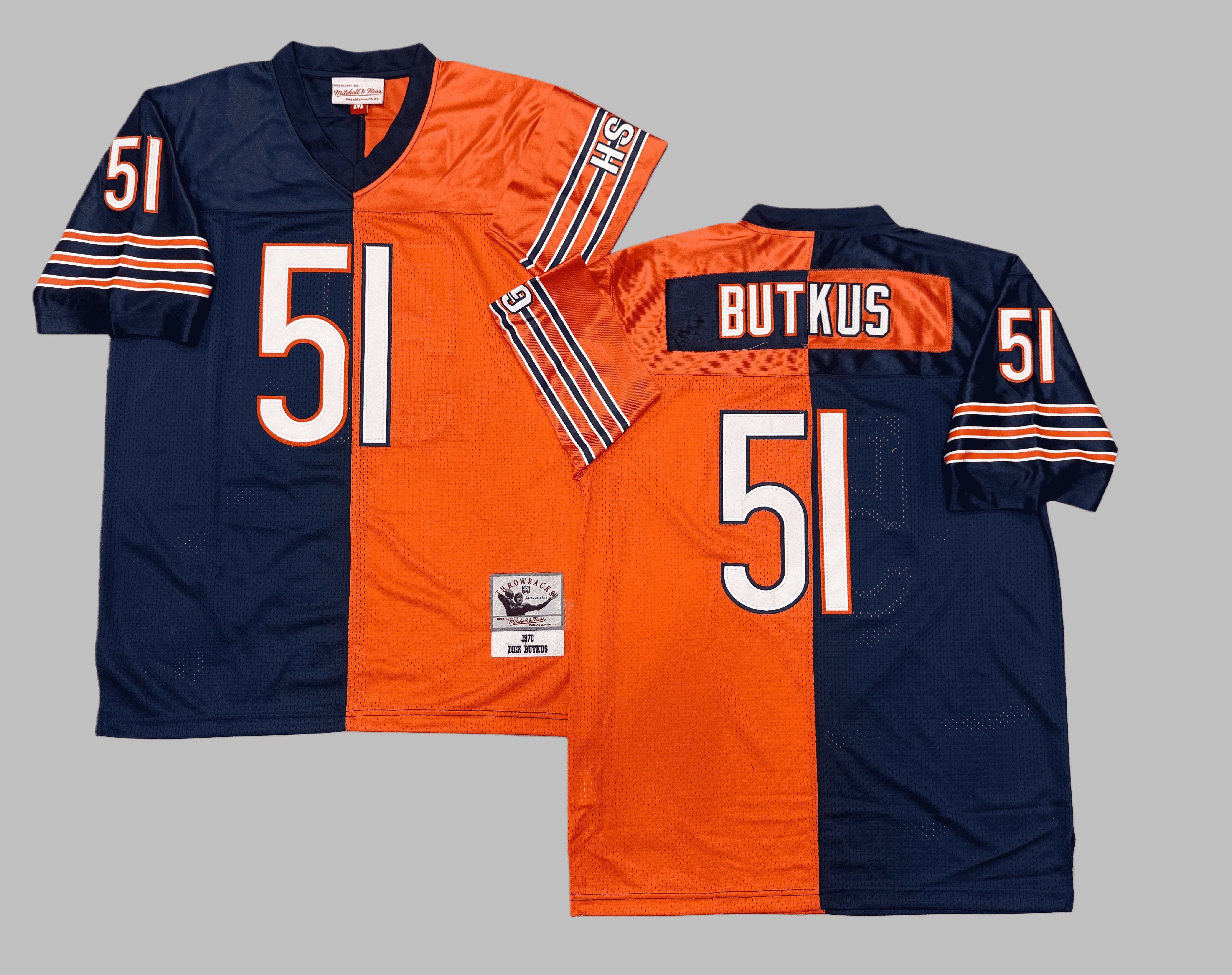 Men's & Youth Chicago Bears #51 Dick Butkus Navy Orange Split Mitchell & Ness Throwback NFL Jersey