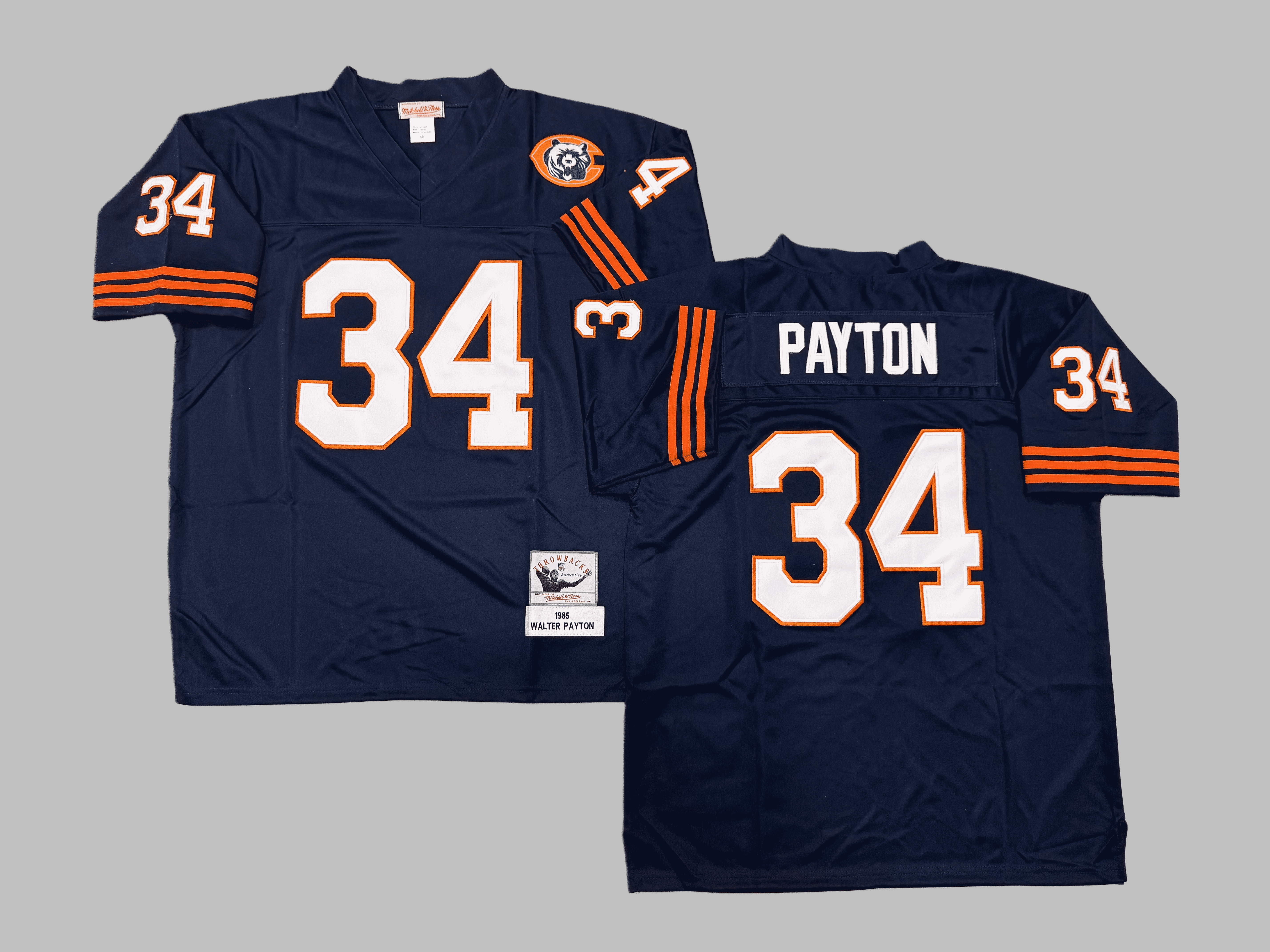 Men's & Youth Chicago Bears #34 Walter Payton Mitchell & Ness Throwback NFL Jersey Navy Team Patch
