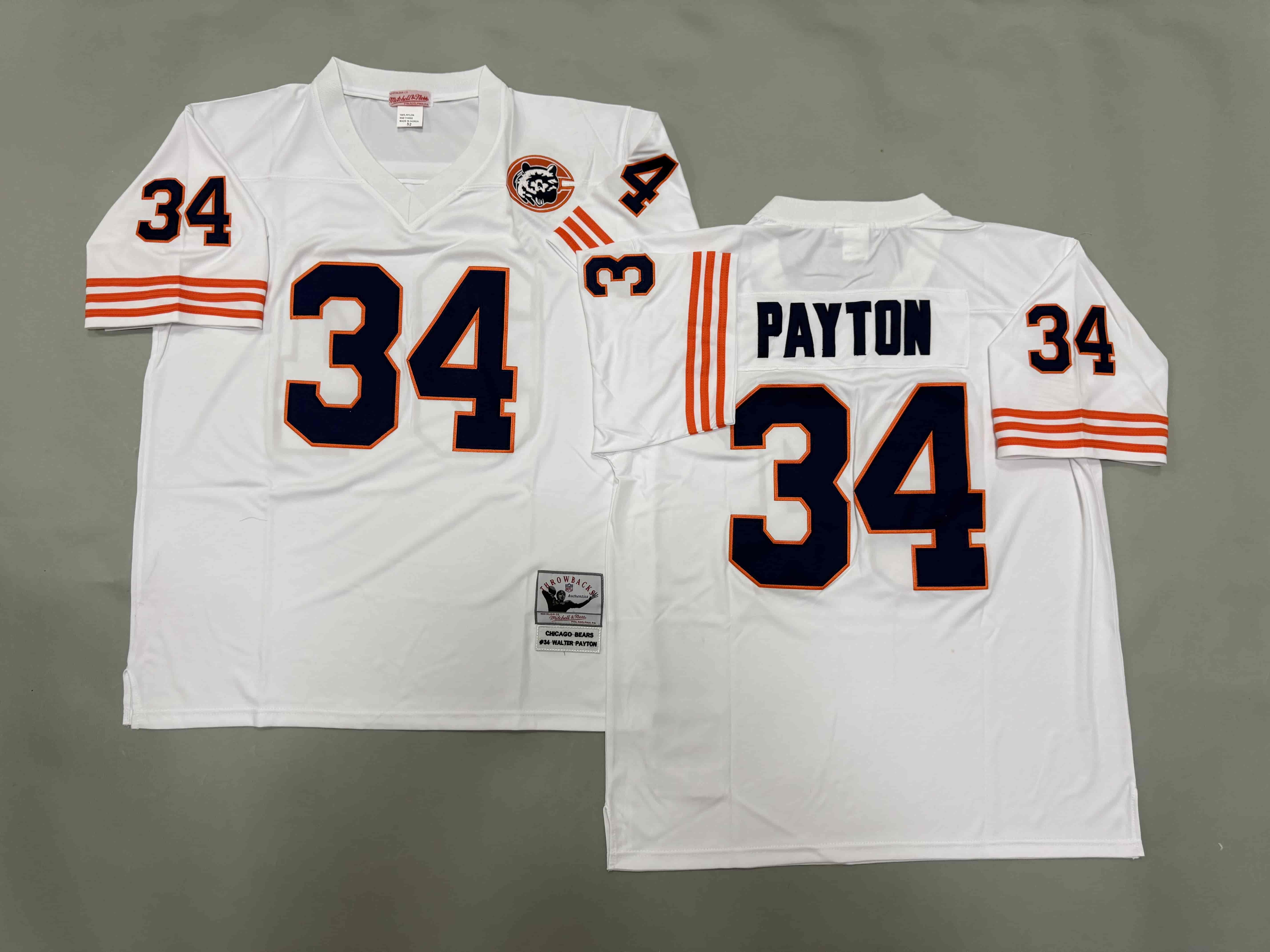 Men's & Youth Chicago Bears #34 Walter Payton Mitchell & Ness Throwback NFL Jersey White Team Bear Patch