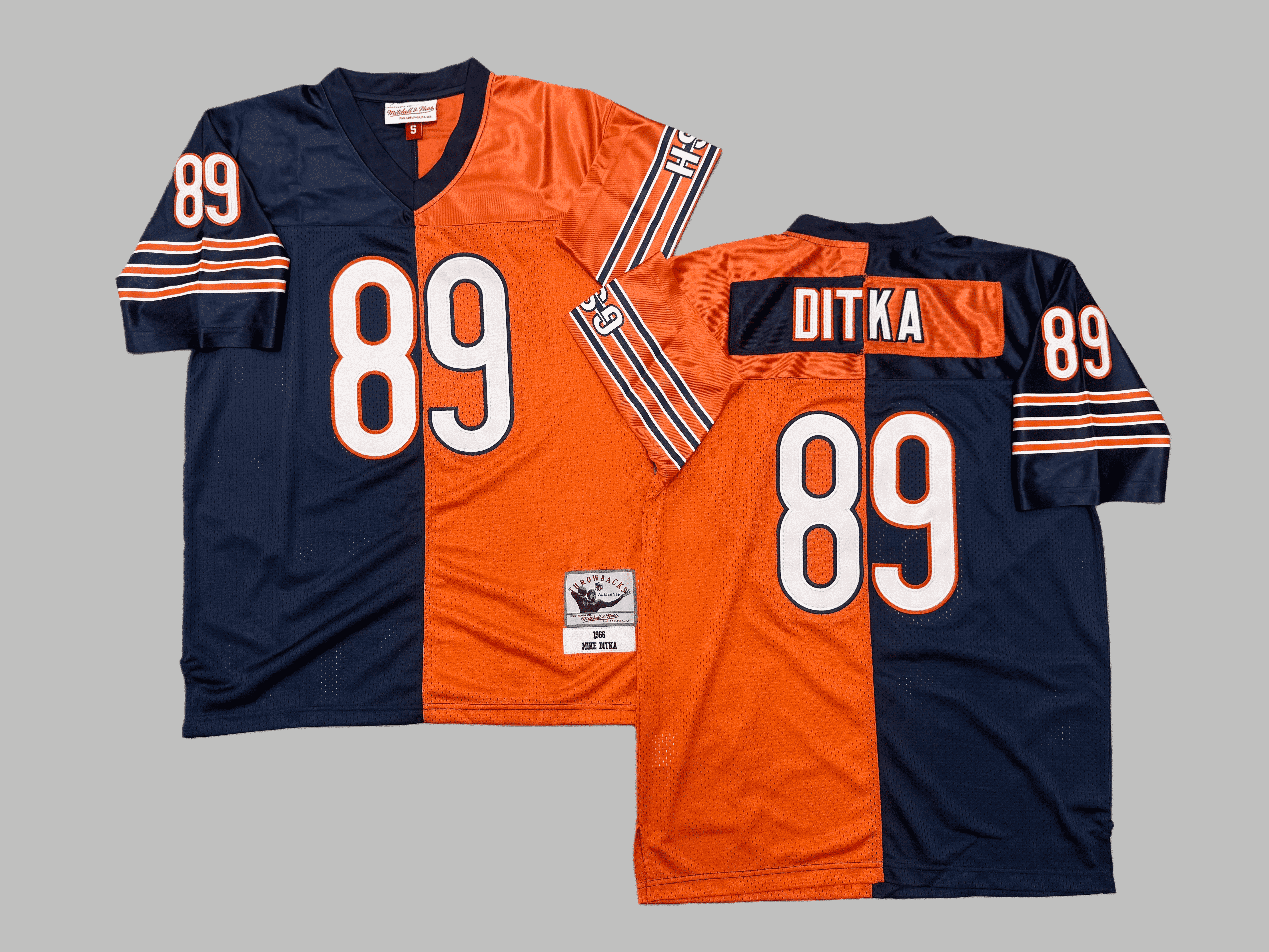 Men's & Youth Chicago Bears #89 Mike Ditka Navy Orange Split Mitchell & Ness Throwback NFL Jersey
