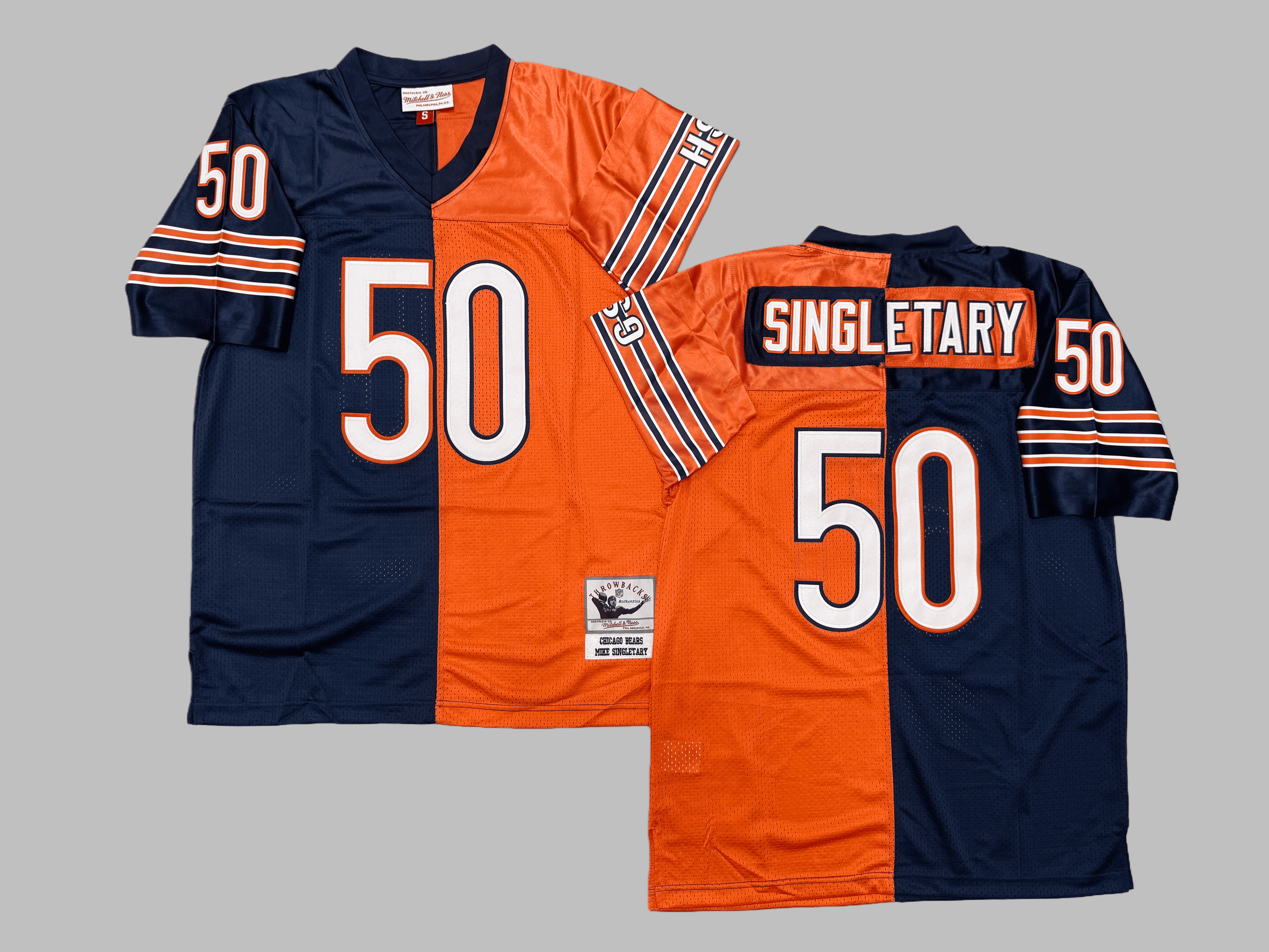 Men's & Youth Chicago Bears #50 Mike Singletary Navy Orange Split Mitchell & Ness Throwback NFL Jersey