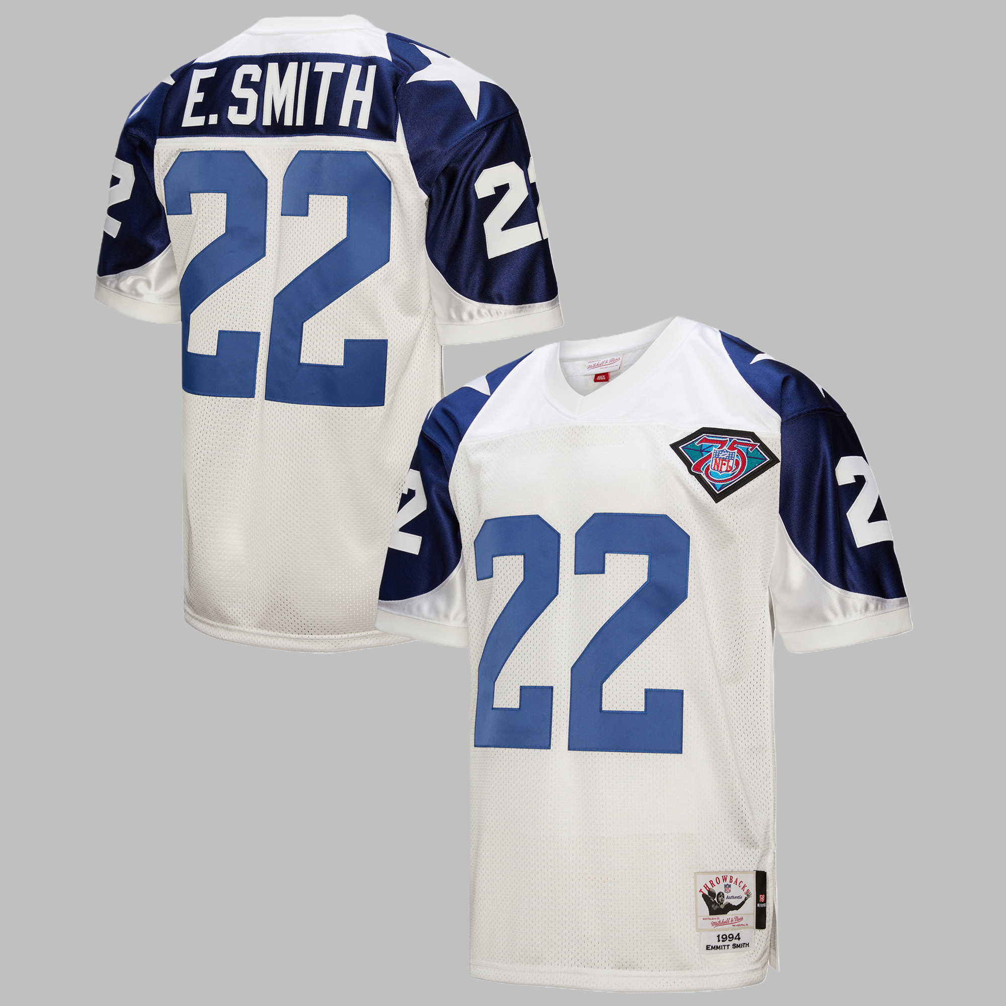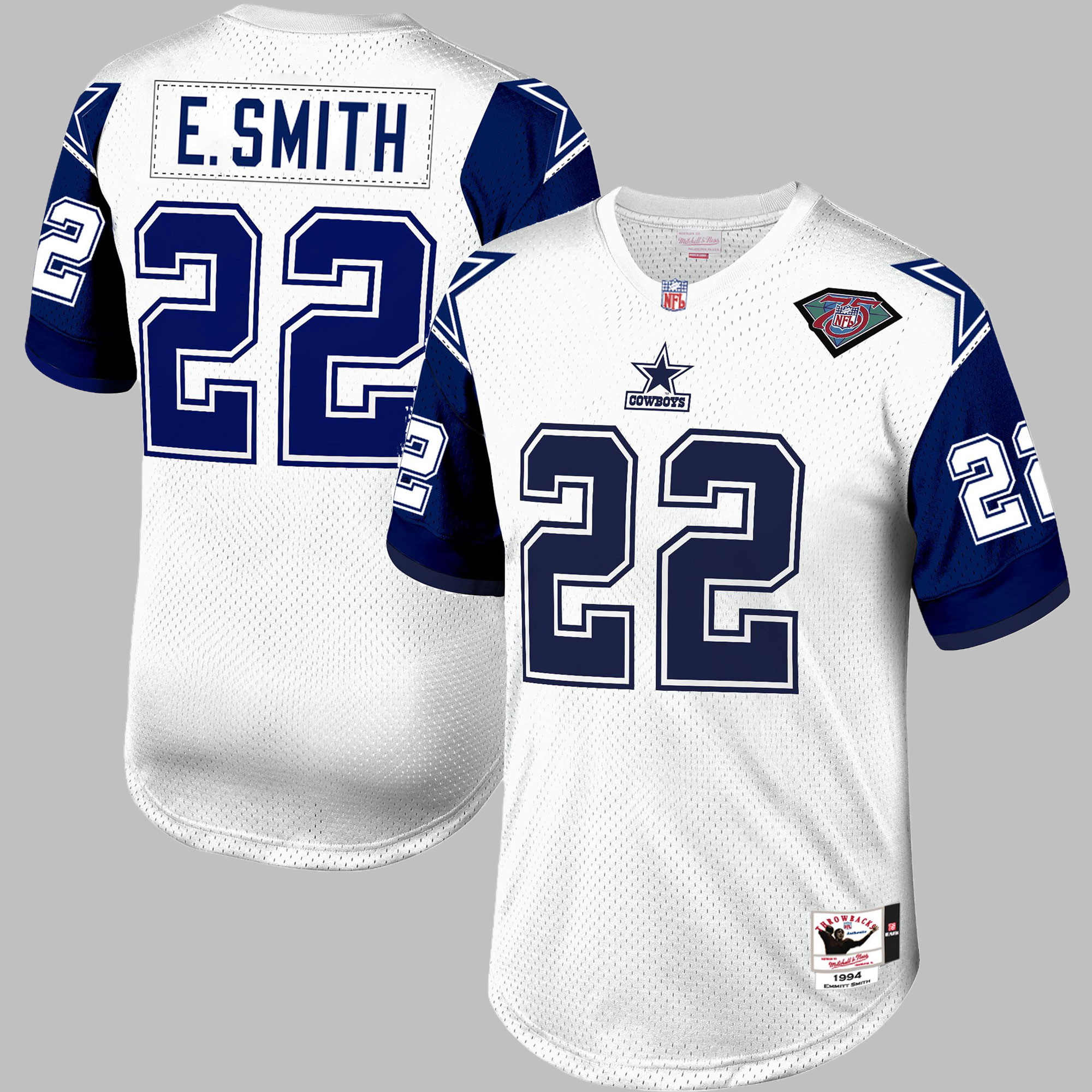 Men's & Youth Dallas Cowboys #22 Emmitt Smith 1994 Mitchell & Ness White Throwback Retired Player NFL Jersey