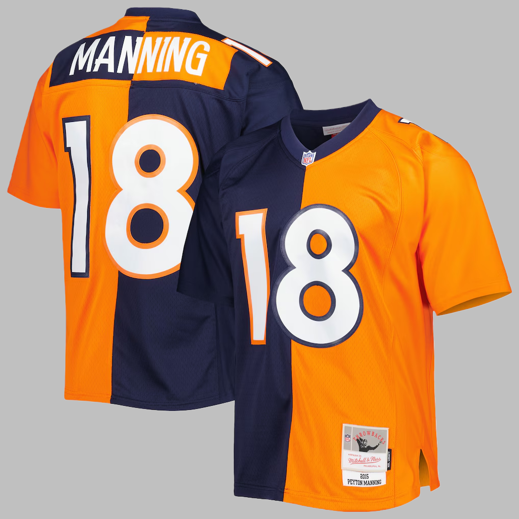 Men's & Youth Denver Broncos #18 Peyton Manning Mitchell & Ness Navy Orange 2015 Split Legacy NFL Jersey