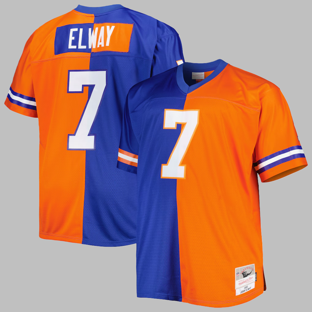 Men's & Youth Denver Broncos #7 John Elway Mitchell & Ness Royal Orange Big & Tall Split Legacy Retired Player NFL Jersey