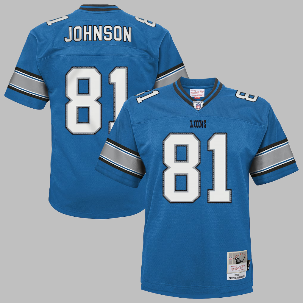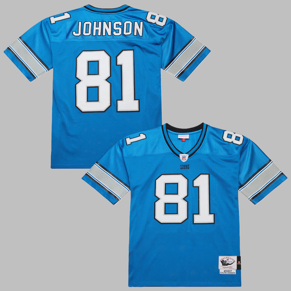 Men's & Youth Detroit Lions #81 Calvin Johnson Mitchell & Ness Blue 2007 Throwback Retired Player NFL Jersey