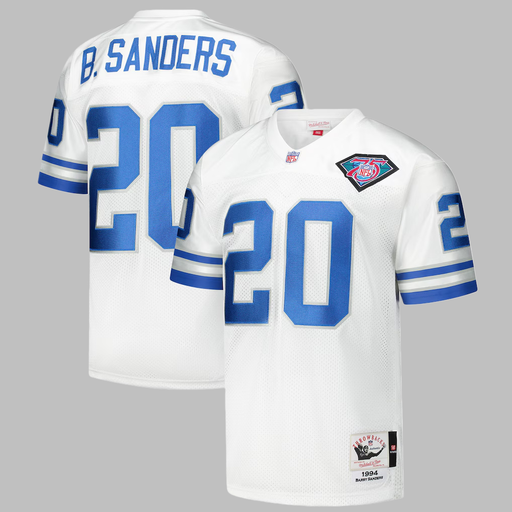 Men's & Youth Detroit Lions #20 Barry Sanders 1994 Mitchell & Ness White Throwback Retired Player NFL Jersey