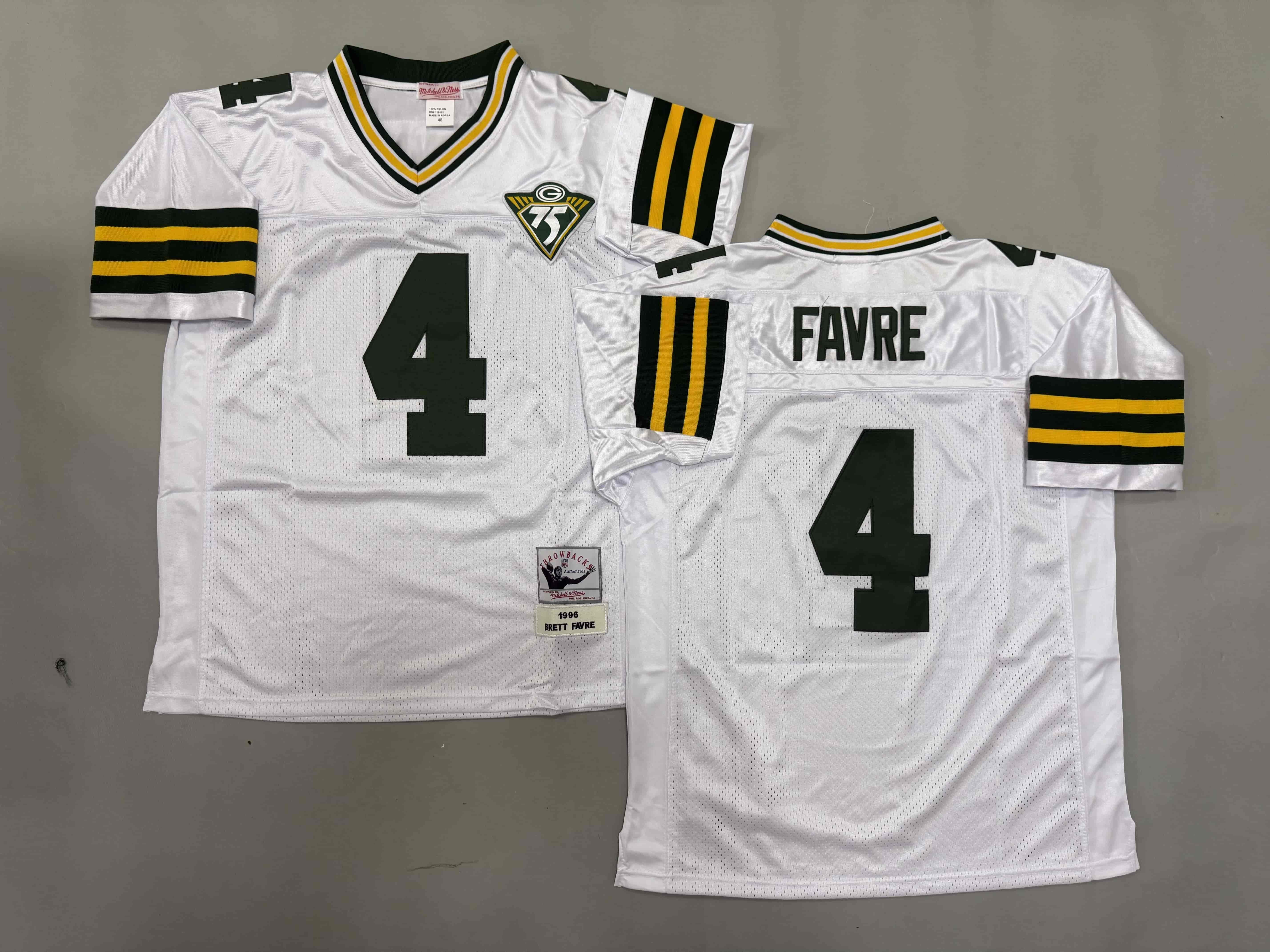 Men's & Youth Green Bay Packers Brett Favre #4 Mitchell & Ness White Throwback NFL Jersey