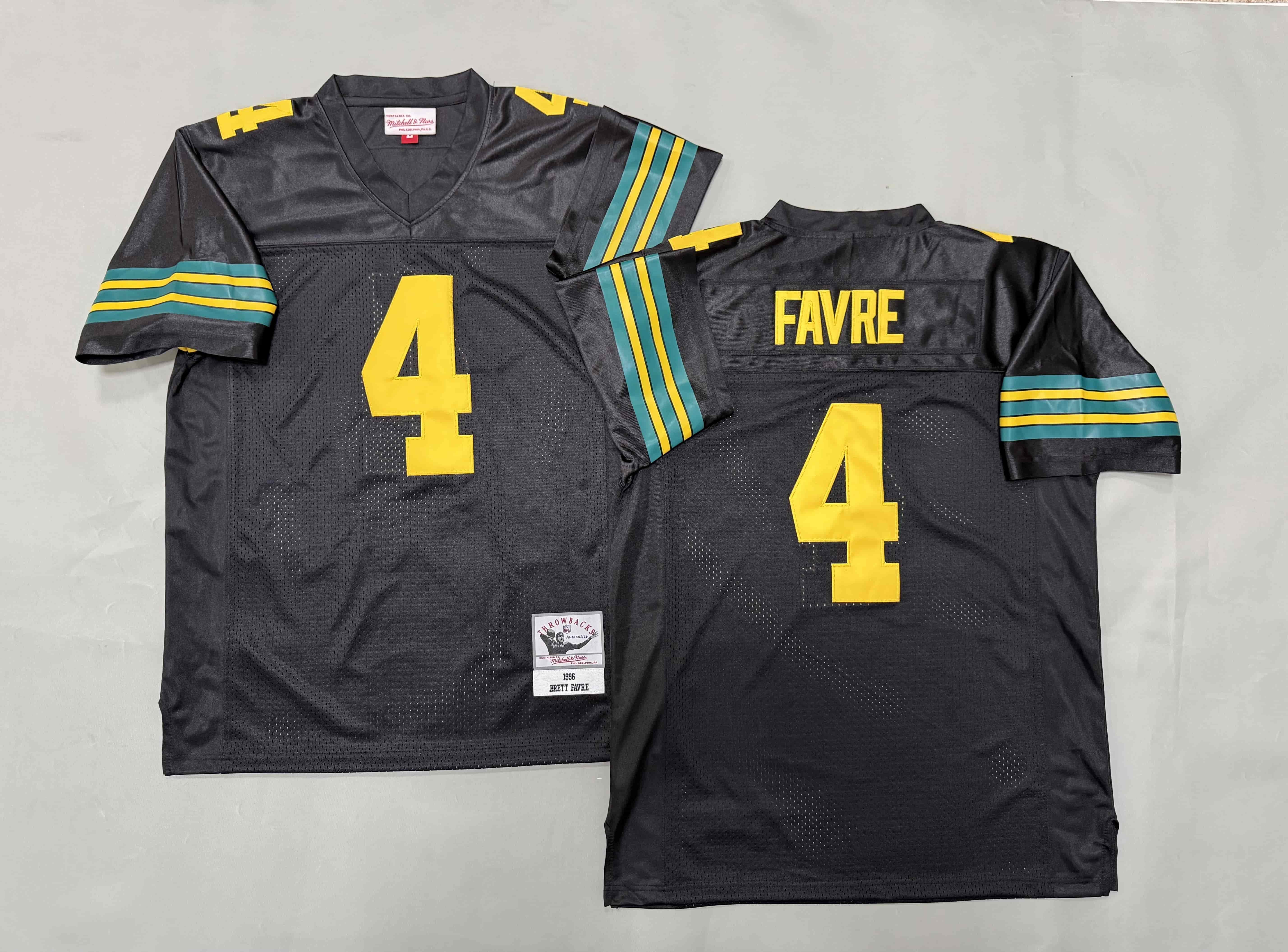 Men's & Youth Green Bay Packers Brett Favre #4 Mitchell & Ness Black Throwback NFL Jersey