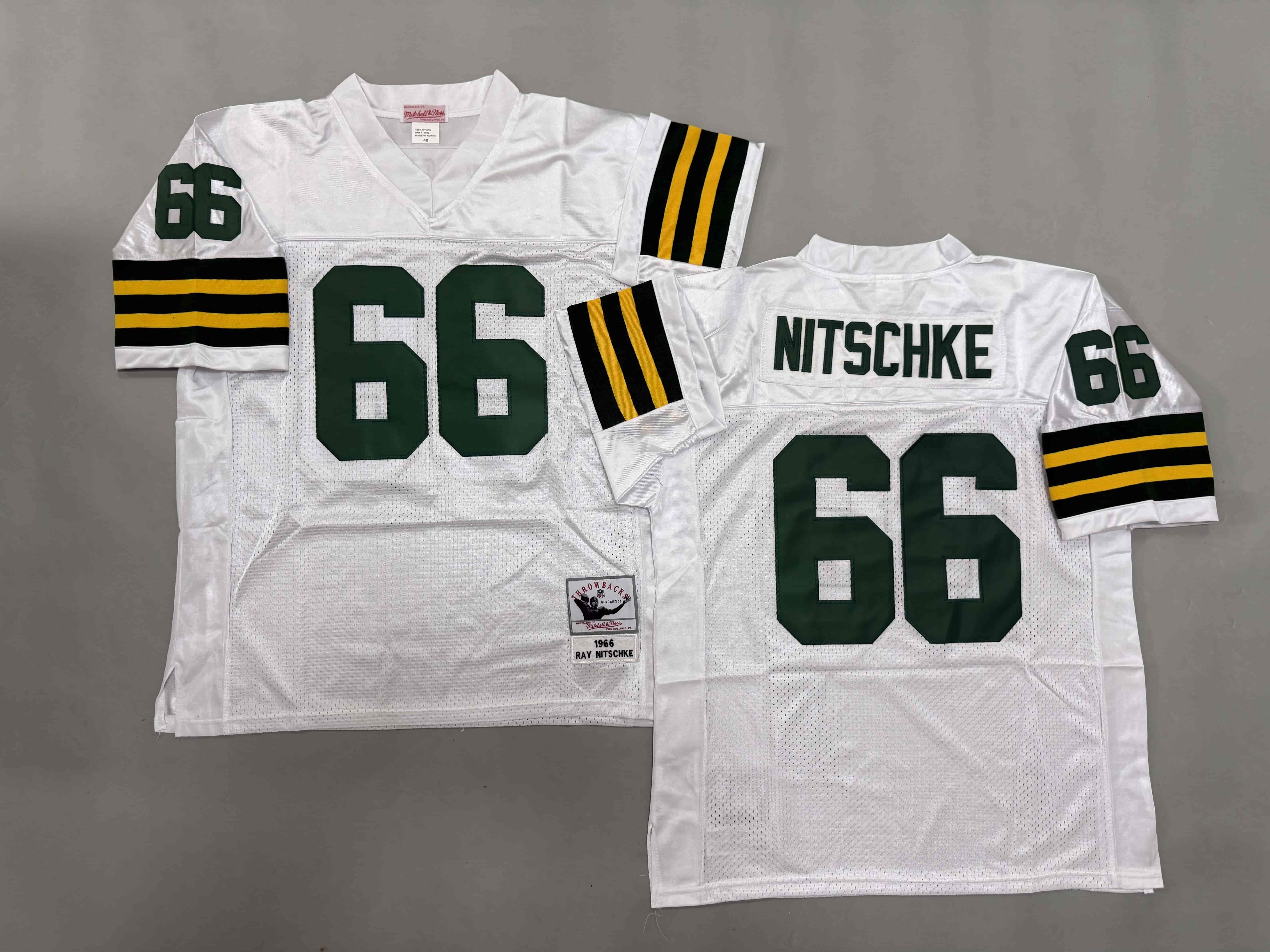 Men's & Youth Green Bay Packers #66 Mitchell & Ness Ray Nitschke 1966 White Player Legacy NFL Jersey