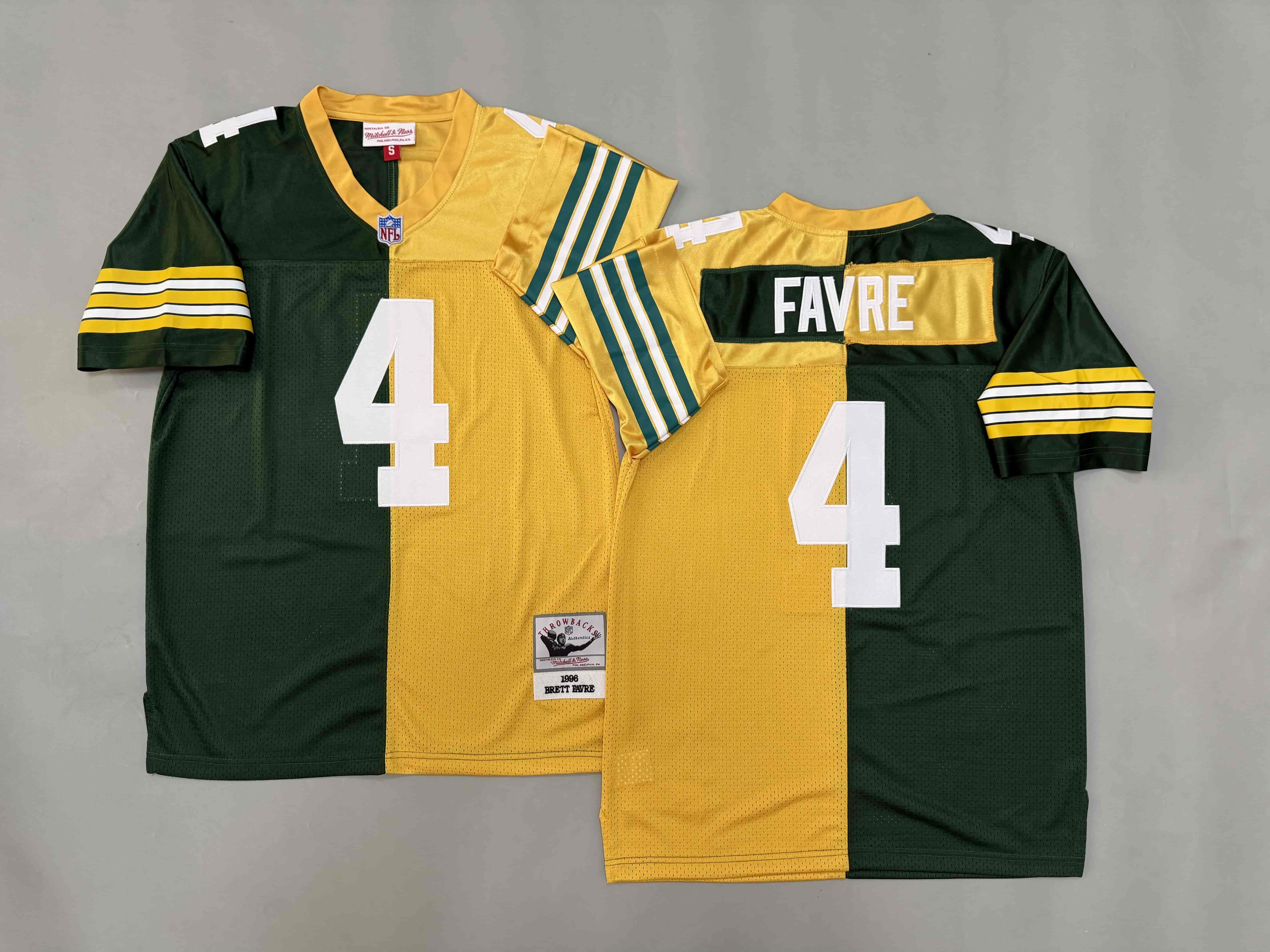 Men's & Youth Green Bay Packers Brett Favre #4 Mitchell & Ness Green Gold Throwback NFL Jersey