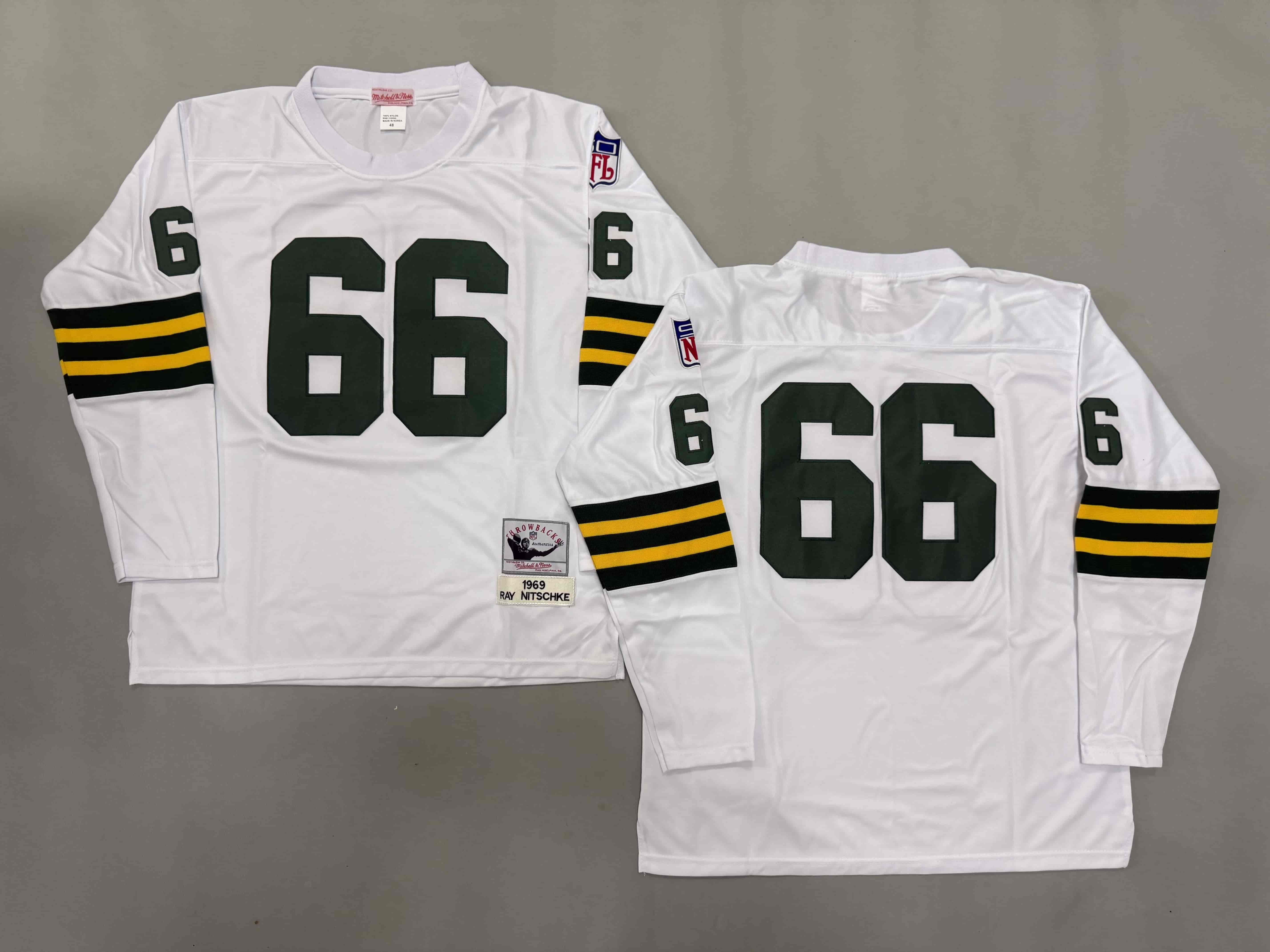 Men's & Youth Green Bay Packers #66 Mitchell & Ness Ray Nitschke 1969 White Player Legacy NFL Jersey