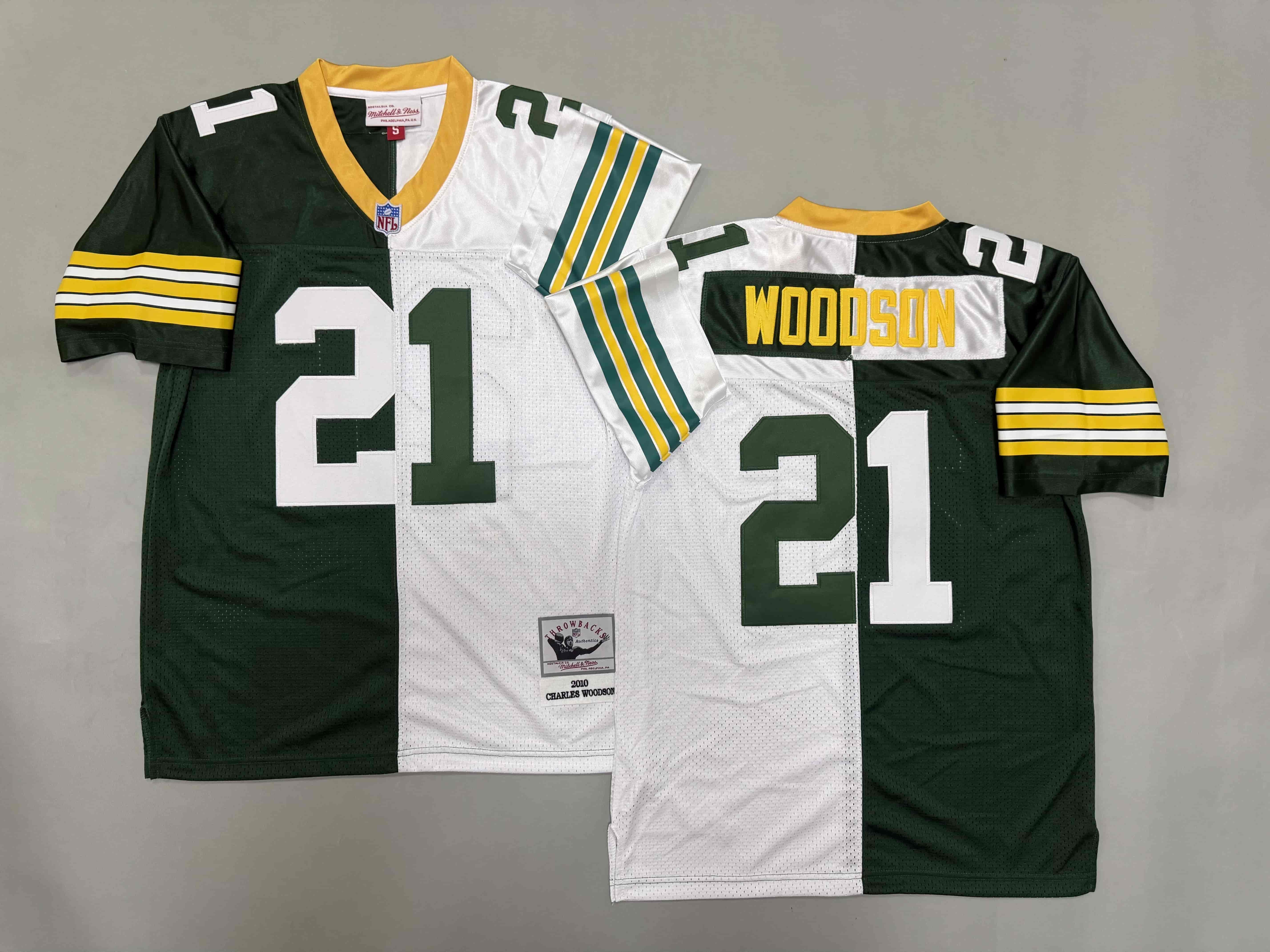 Men's & Youth Green Bay Packers #21 Charles Woodson Mitchell & Ness White Green Throwback NFL Jersey