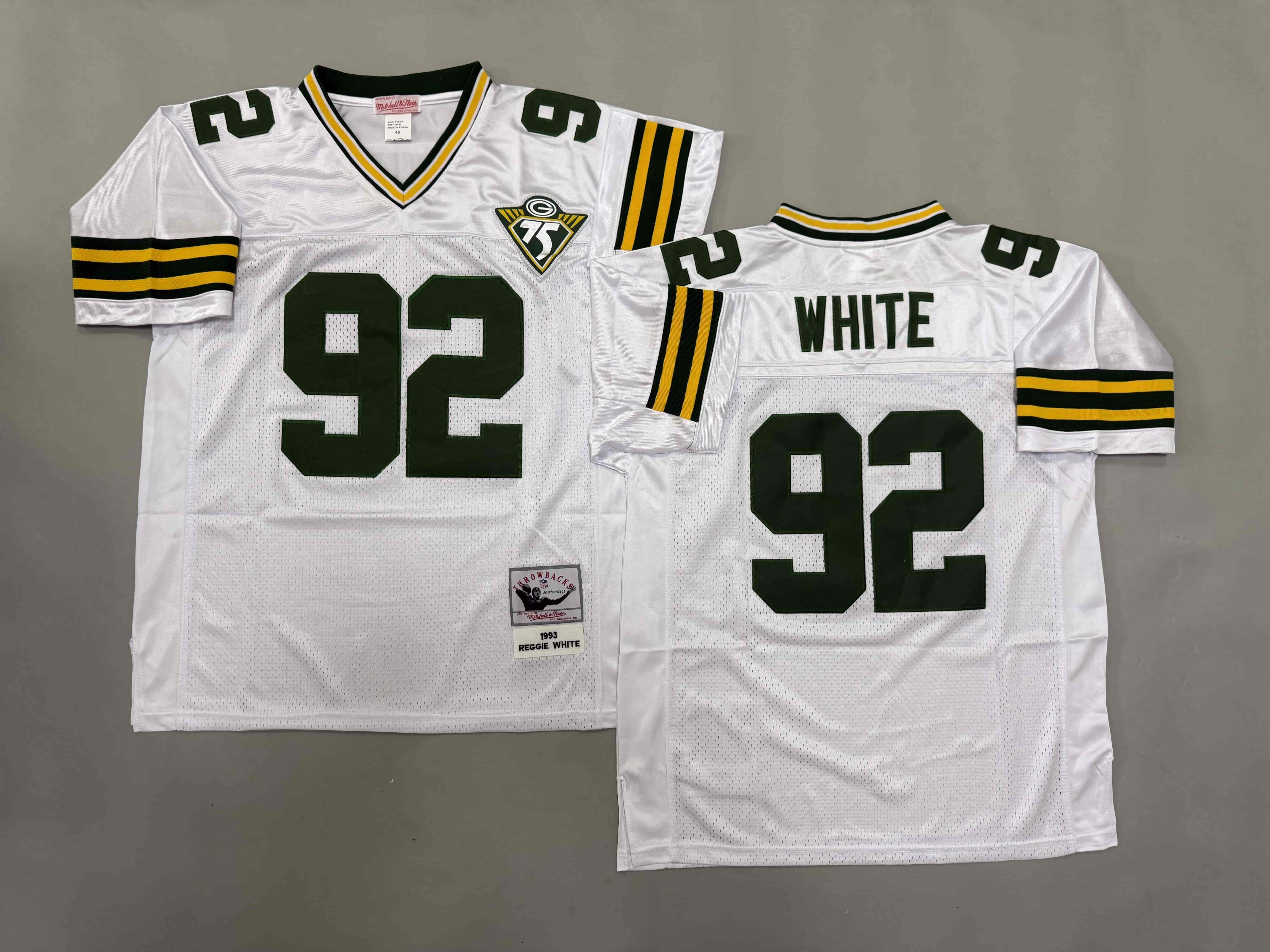 Men's & Youth Green Bay Packers #92 Reggie White 1993 Mitchell & Ness White Throwback Retired Player NFL Jersey