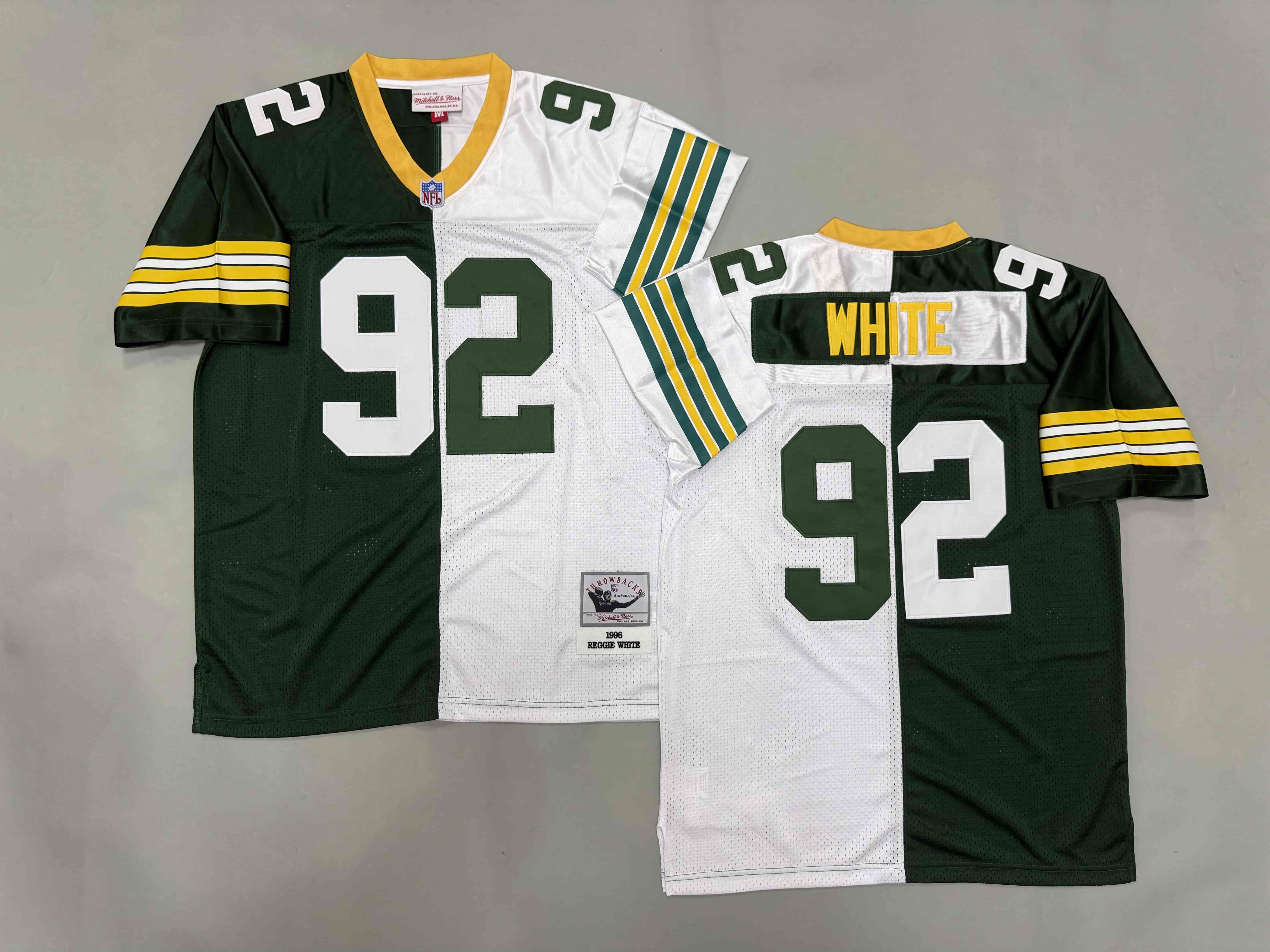 Men's & Youth Green Bay Packers #92 Reggie White Mitchell & Ness White Green Throwback Split NFL Jersey