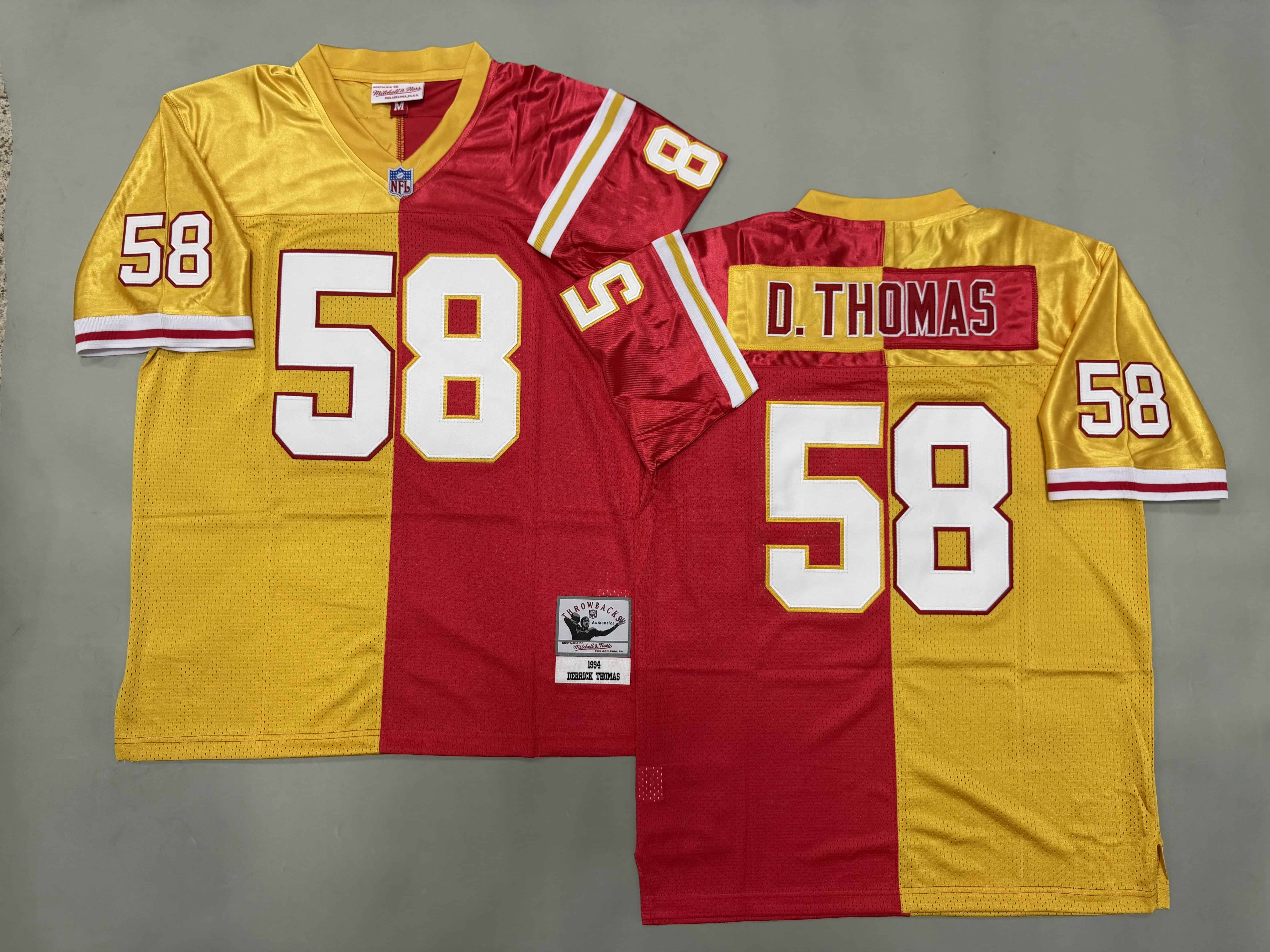 Men's & Youth Kansas City Chiefs #58 Derrick Thomas Mitchell & Ness Throwback NFL Jersey Red Gold Split
