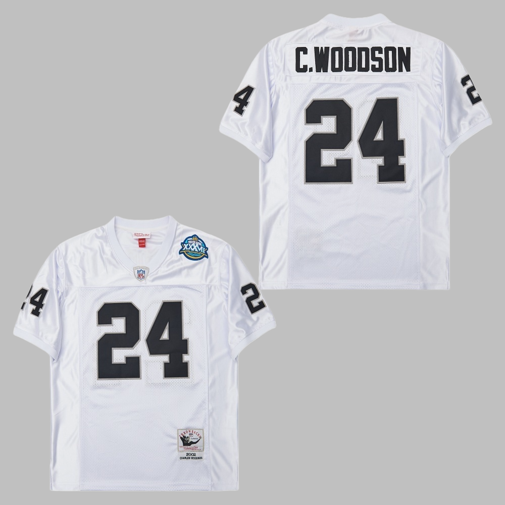 Men's & Youth Las Vegas Raiders #24 Charles Woodson 2002 Mitchell & Ness Throwback NFL Jersey White