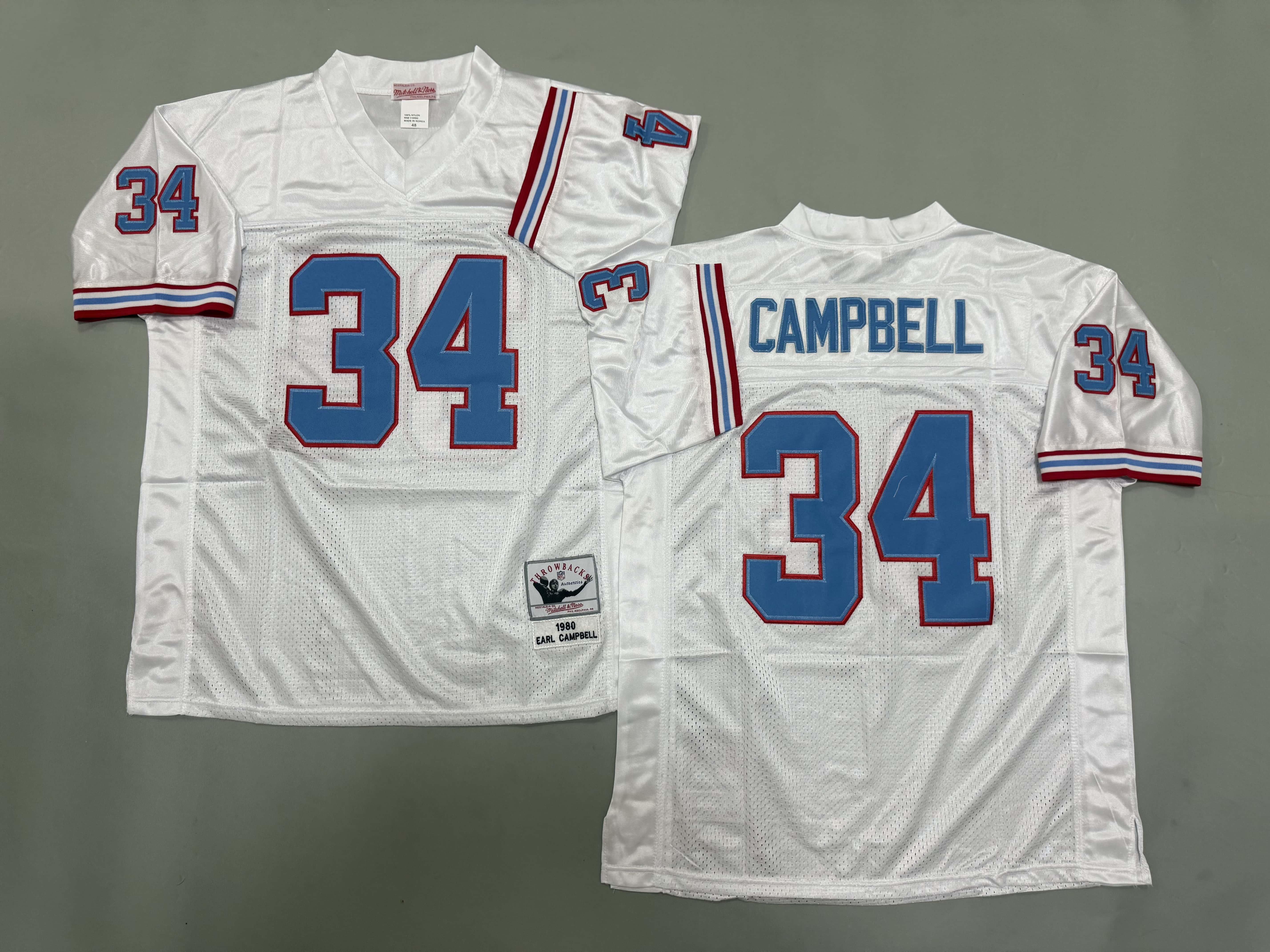 Men's & Youth Tennessee Oilers #34 Earl Campbell Mitchell & Ness Throwback NFL Jersey Light White
