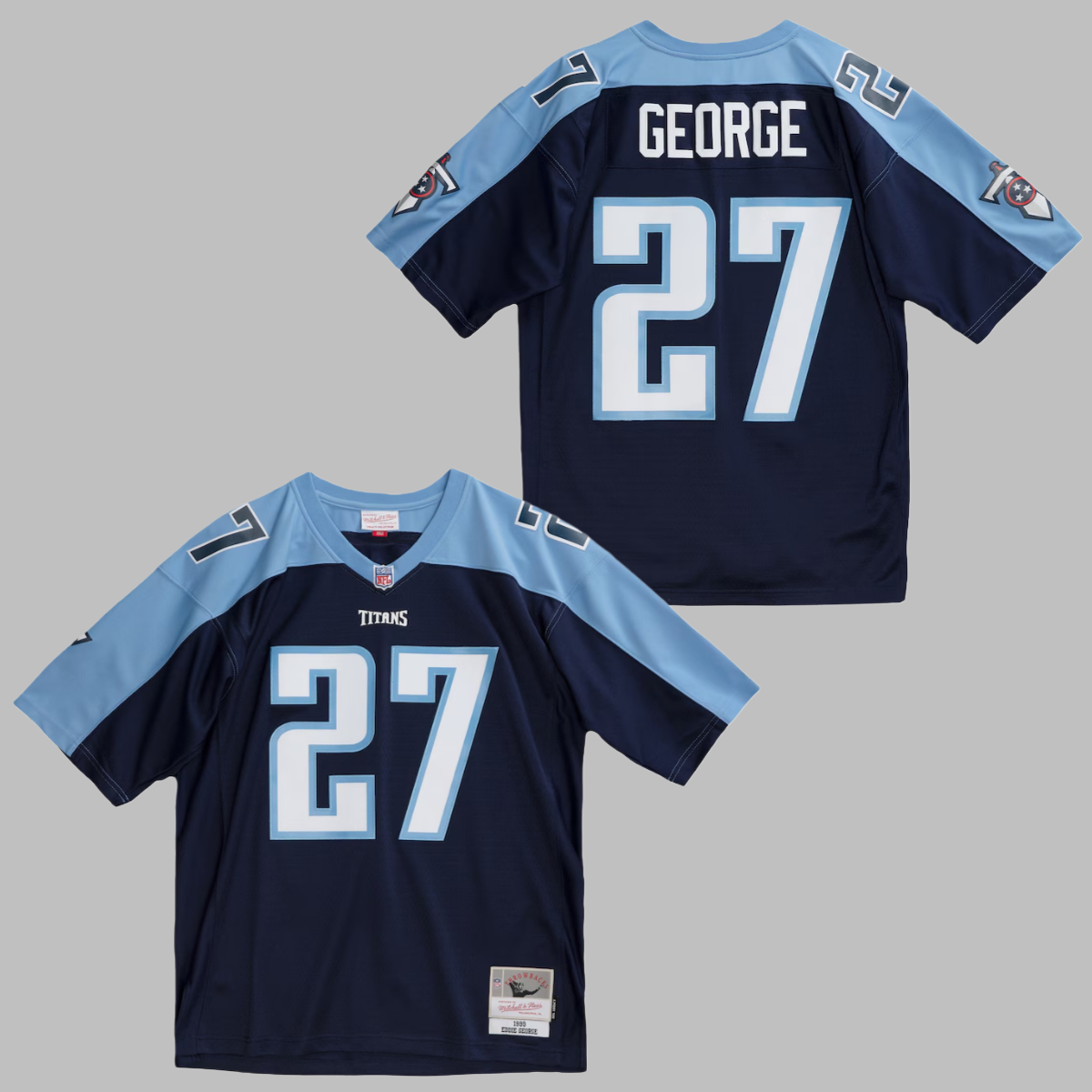 Men's & Youth Tennessee Titans #27 Eddie George Mitchell & Ness Navy 1999 Legacy NFL Jersey