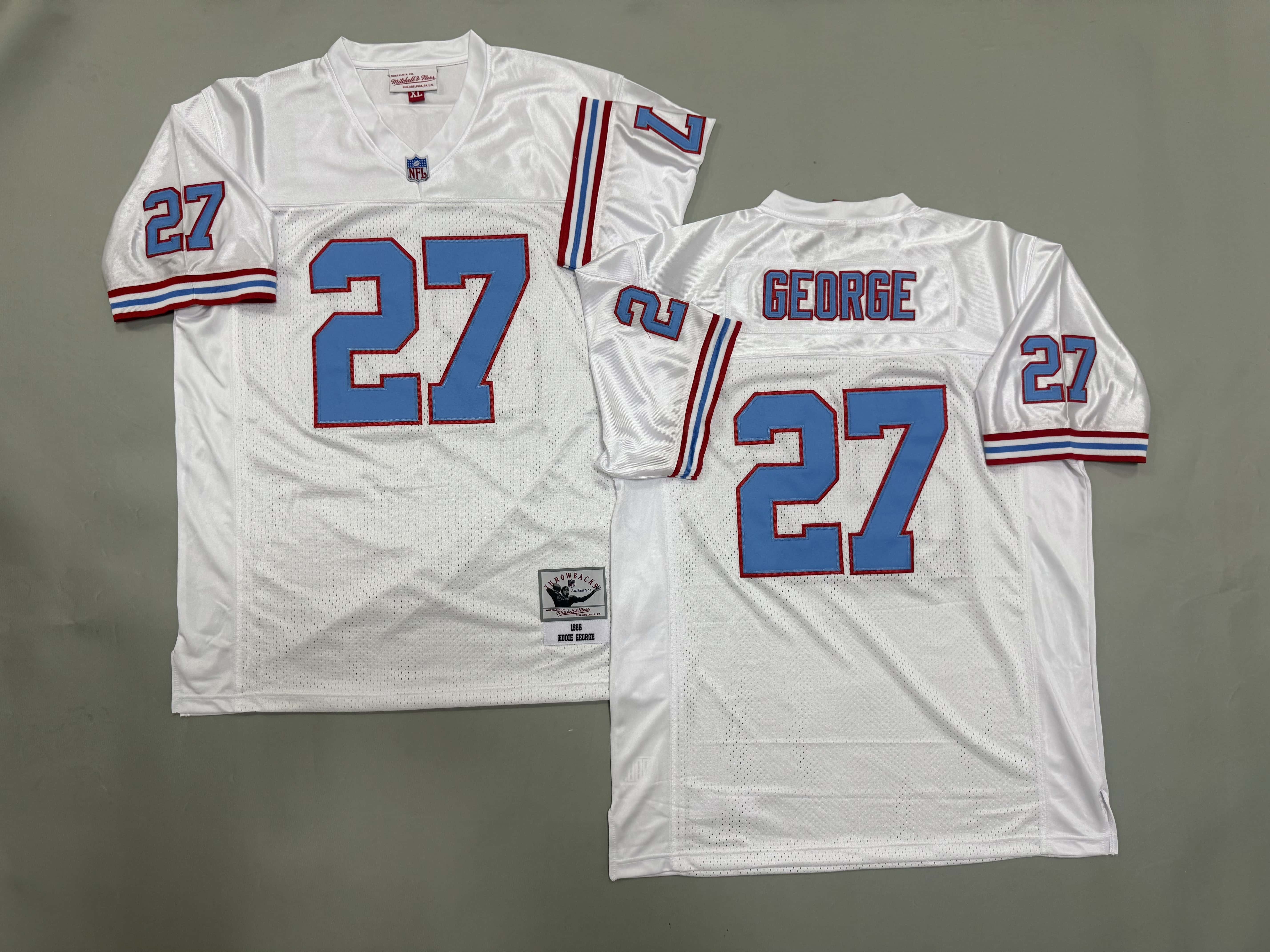 Men's & Youth Tennessee Oilers #27 Eddie George 1996 White Mitchell & Ness Throwback NFL Jersey