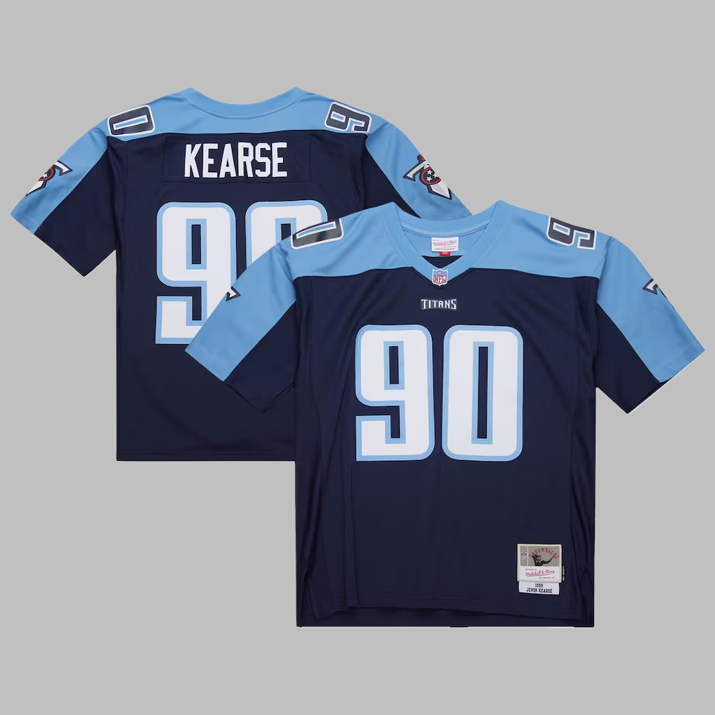 Men's & Youth Tennessee Titans #90 Jevon Kearse Mitchell & Ness Navy 1999 Legacy NFL Jersey