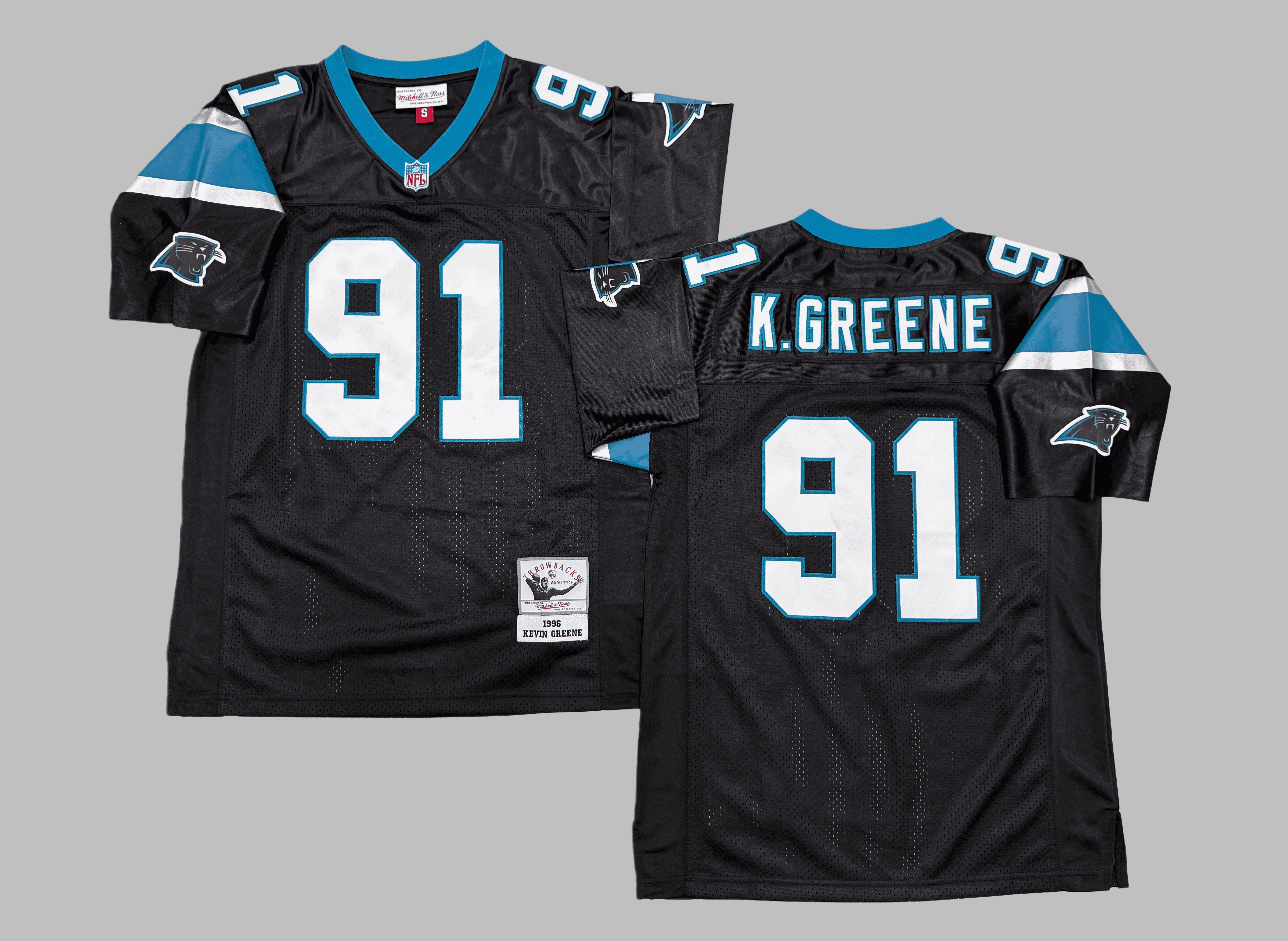 Men's & Youth Carolina Panthers #91 Kevin Greene 1996 Mitchell & Ness Black Throwback NFL Jersey