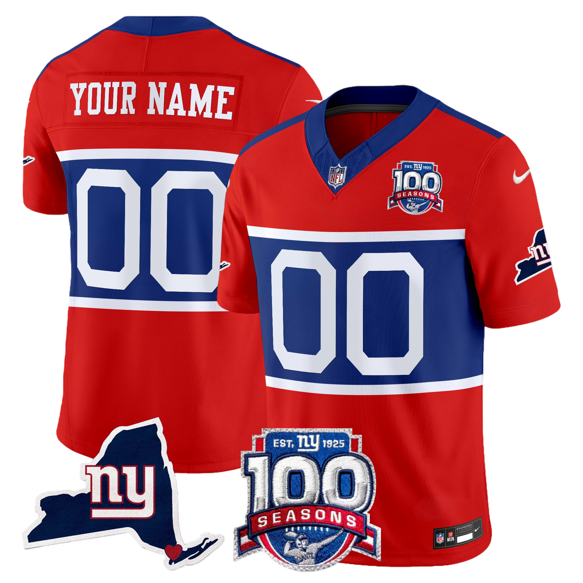 New York Giants ‘Century Red’ 100th Season Commemorative Vapor Custom Jersey – All Stitched 1