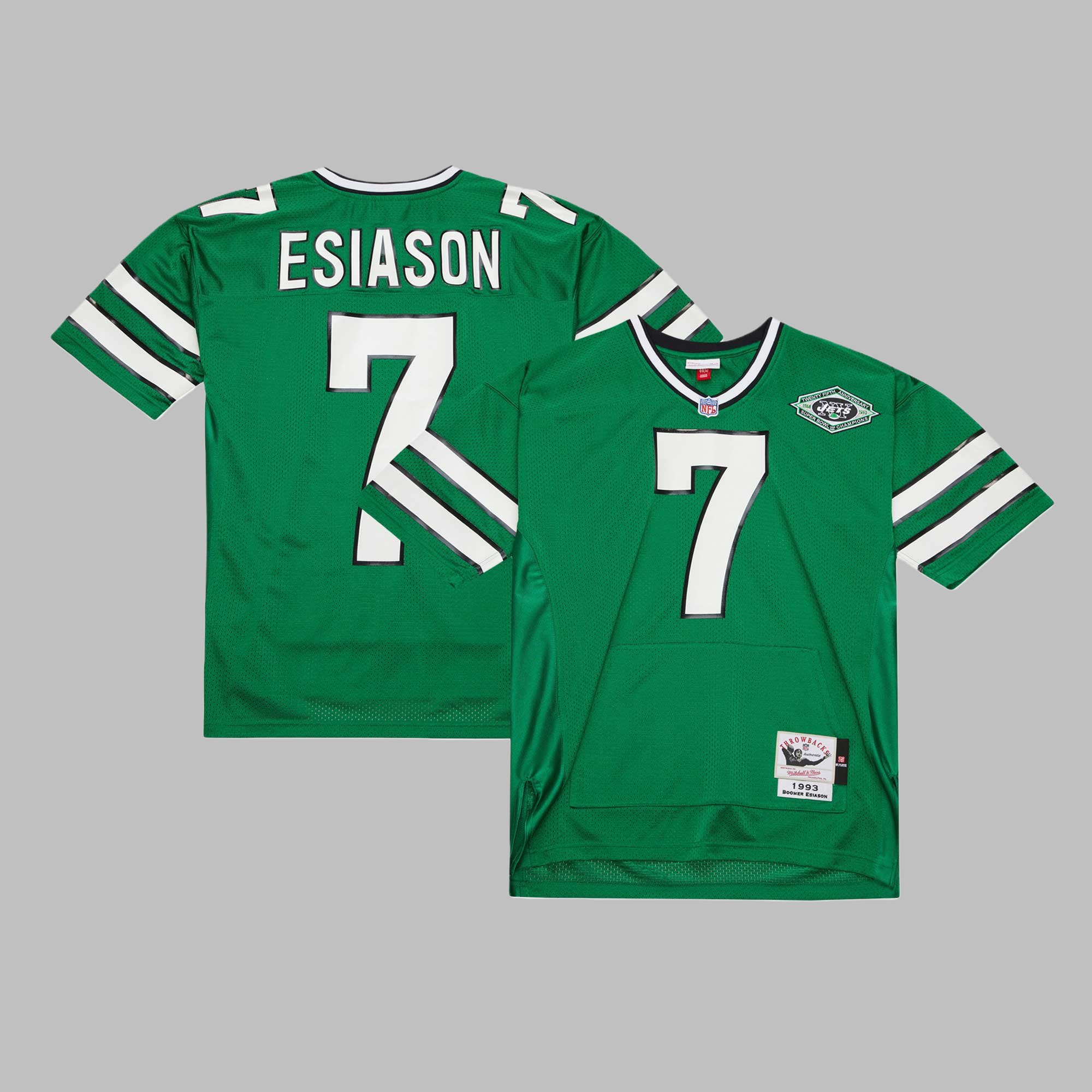 Men's & Youth New York Jets #7 Boomer Esiason Mitchell & Ness Kelly Green 1993 Throwback Retired Player Pocket NFL Jersey