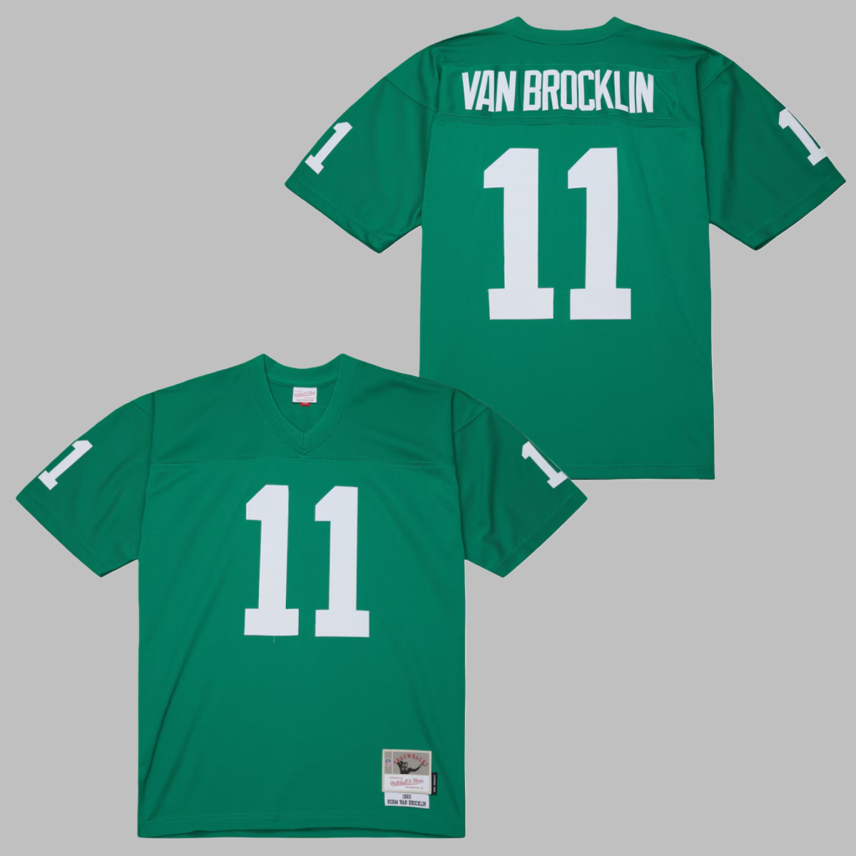 Men's & Youth Philadelphia Eagles #11 Norm Van Brocklin Mitchell & Ness Throwback NFL Jersey Kelly Green