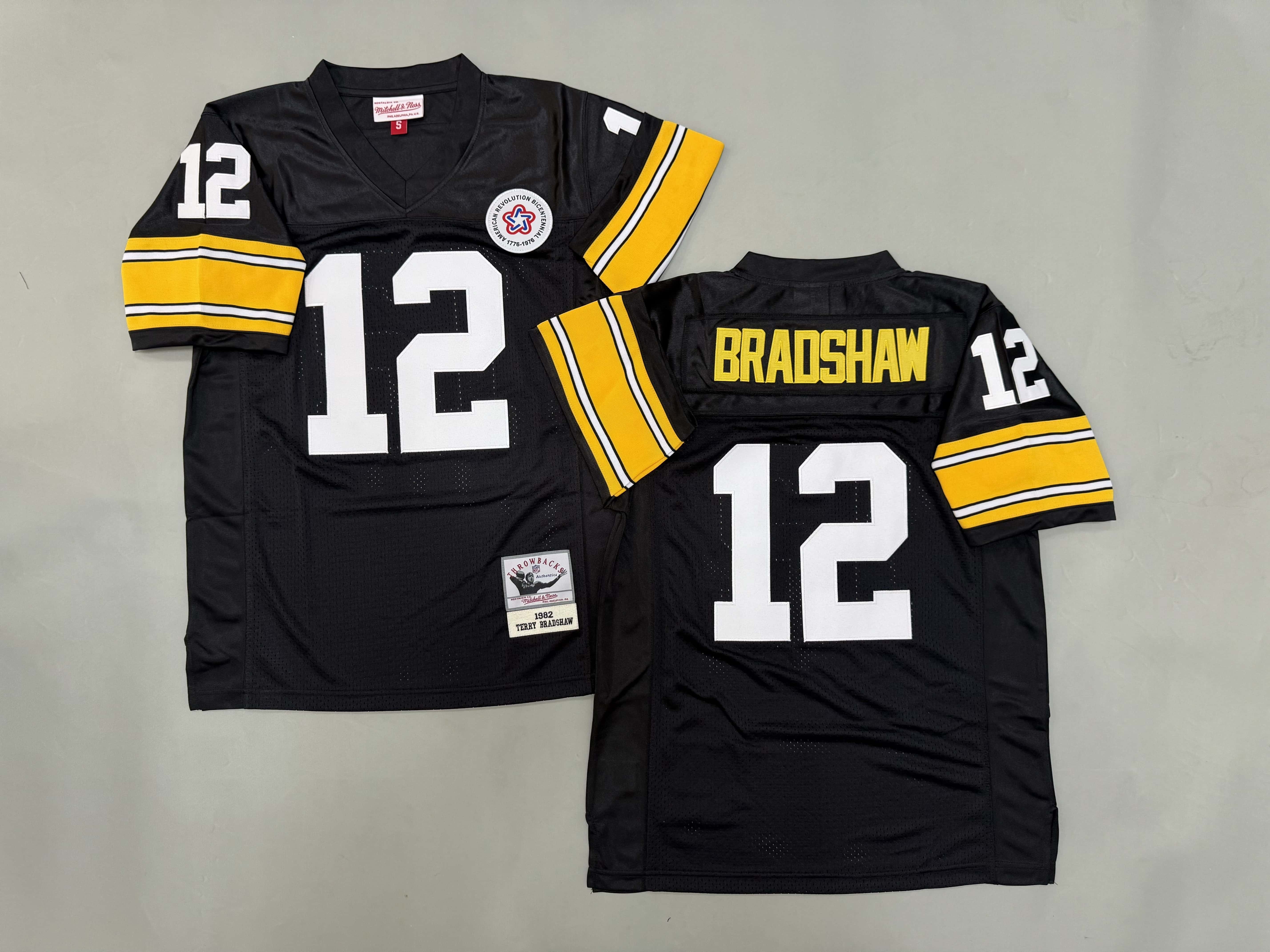 Men's & Youth Pittsburgh Steelers #12 Terry Bradshaw Mitchell & Ness Throwback NFL Jersey Black