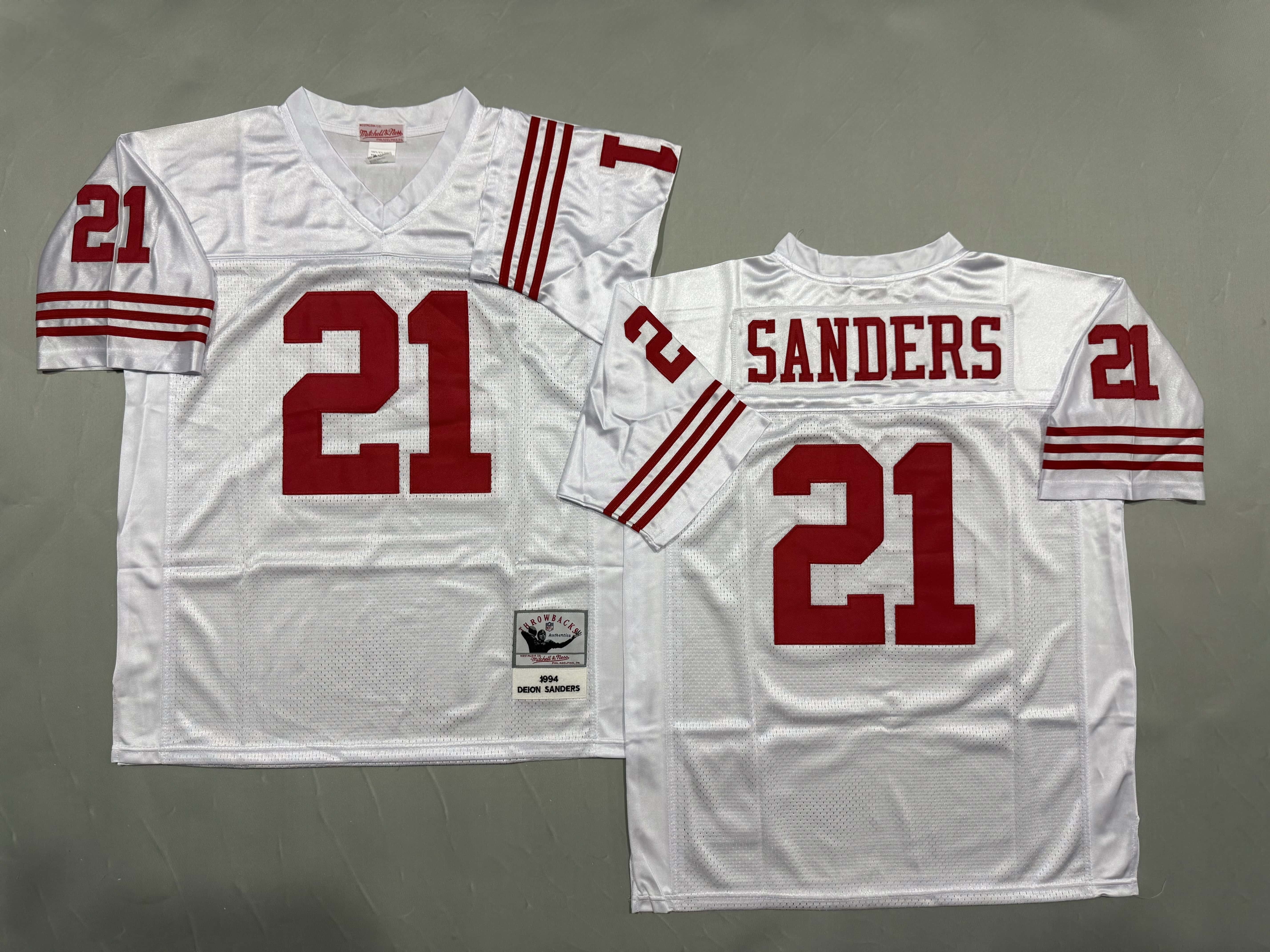 Men's & Youth San Francisco 49ers #21 Deion Sanders Mitchell & Ness White Throwback NFL Jersey