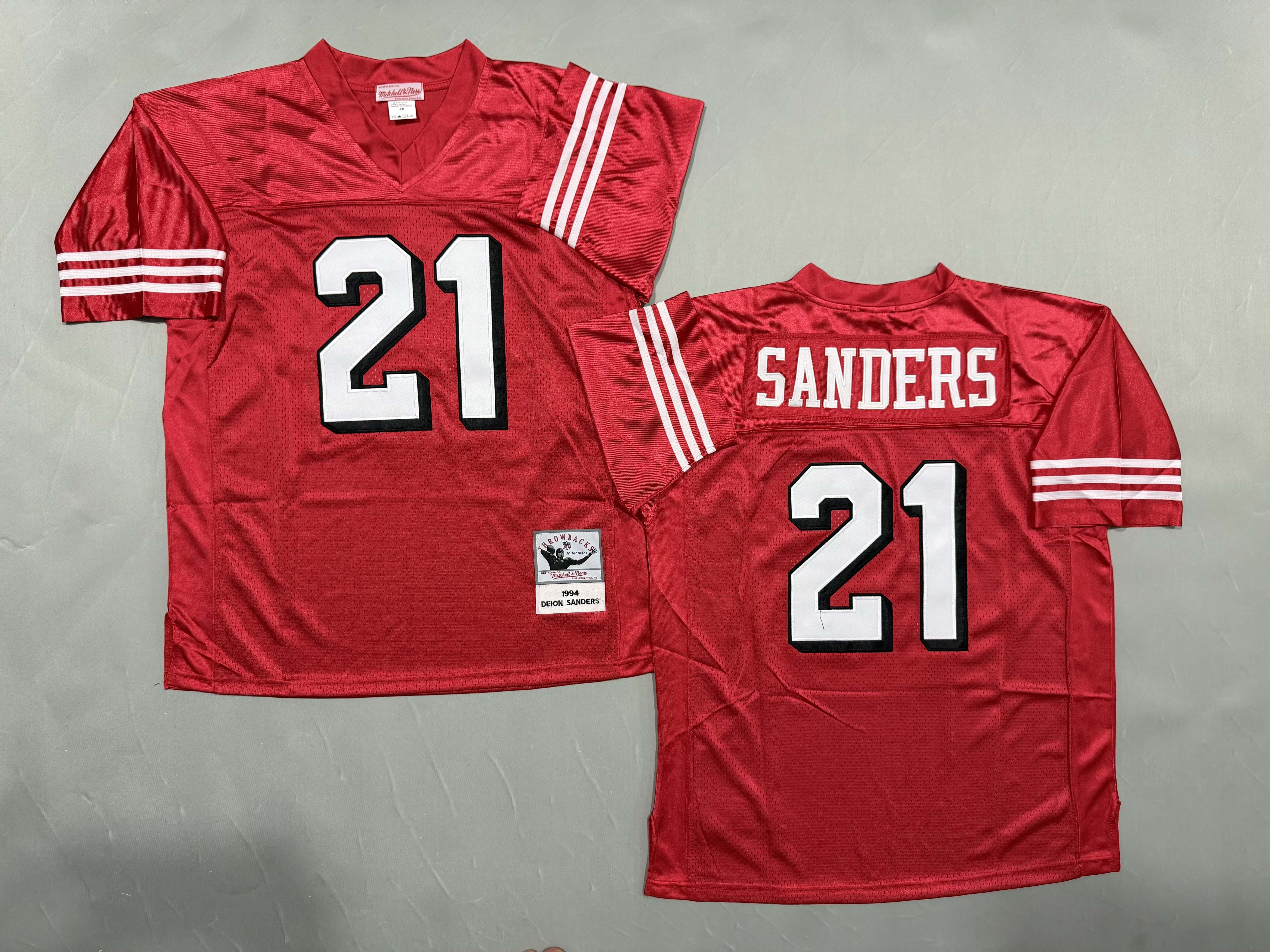 Men's & Youth San Francisco 49ers #21 Deion Sanders Mitchell & Ness Red Throwback NFL Jersey