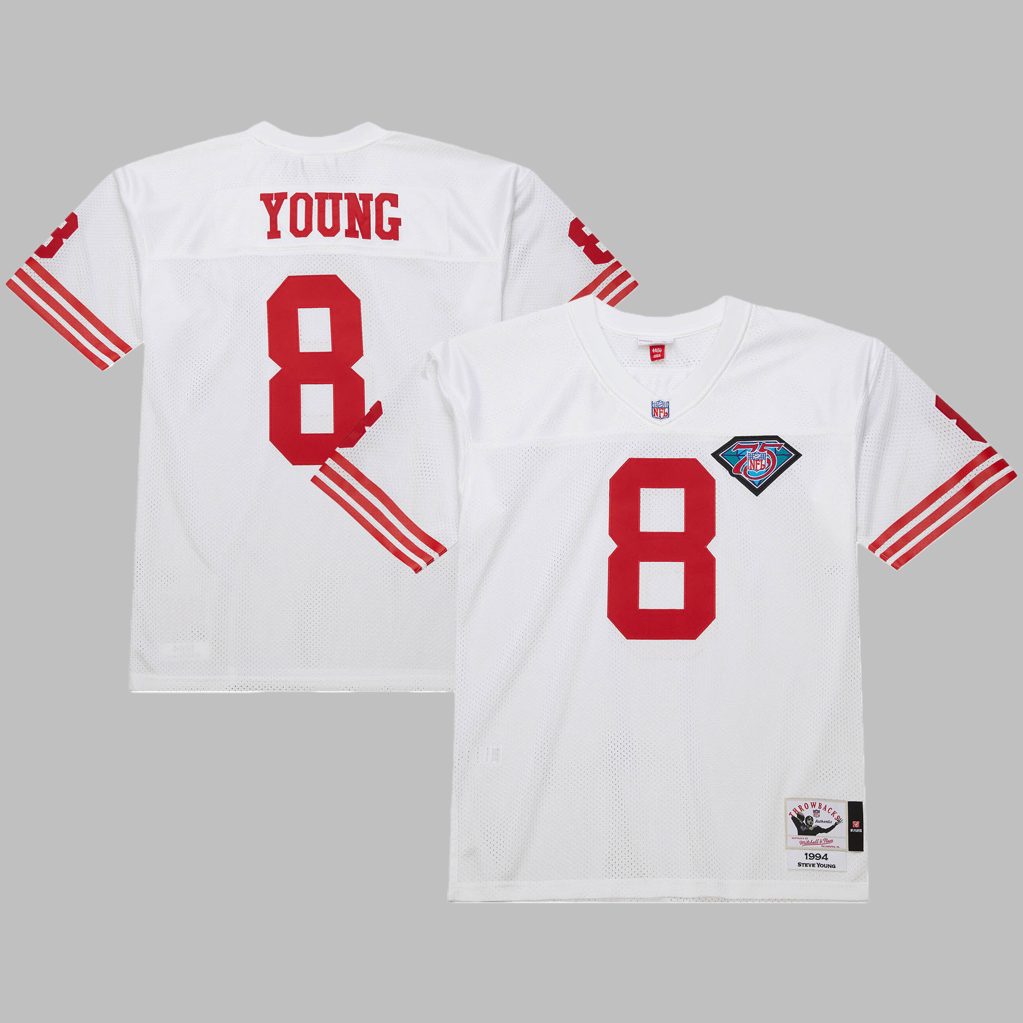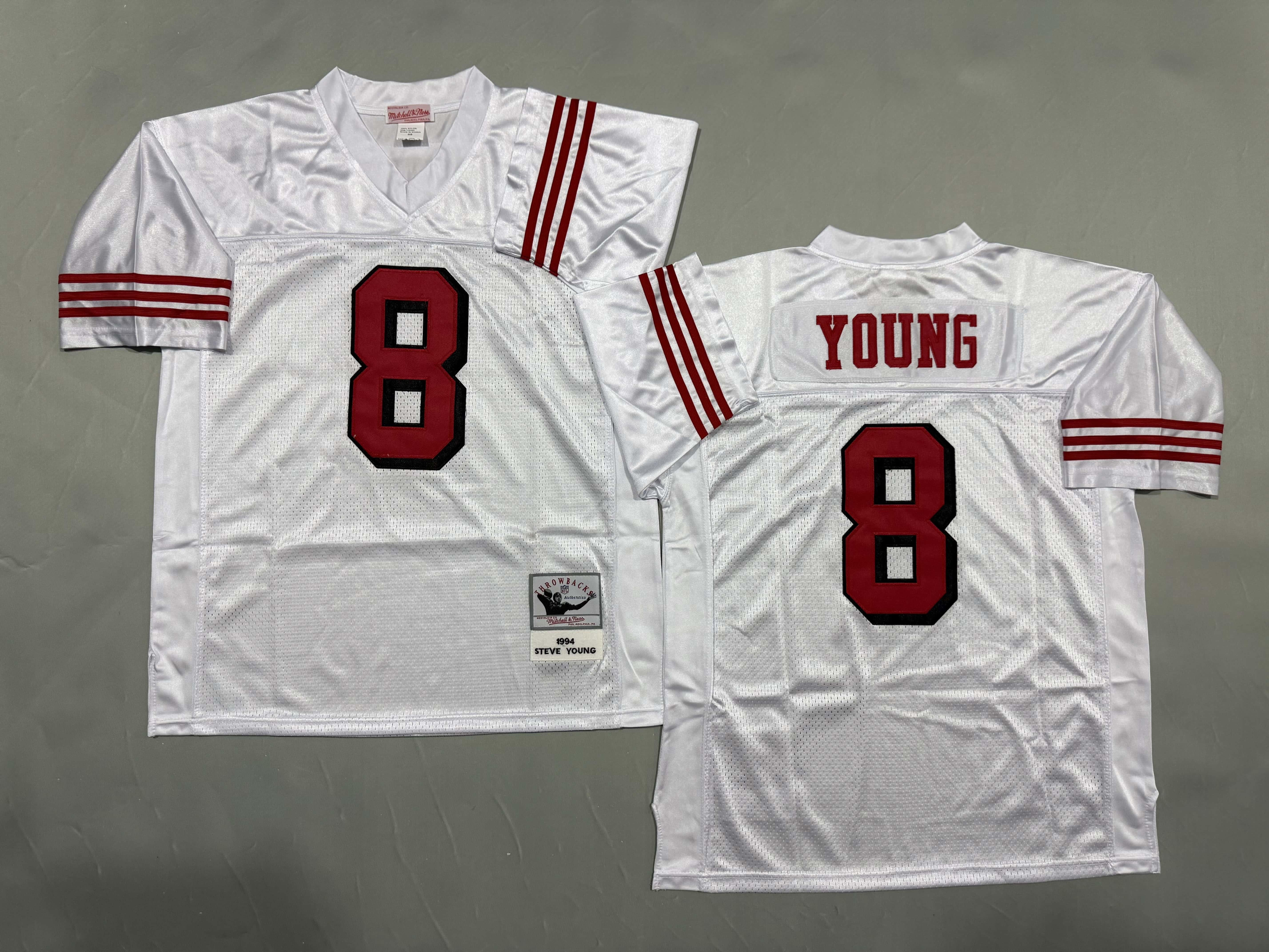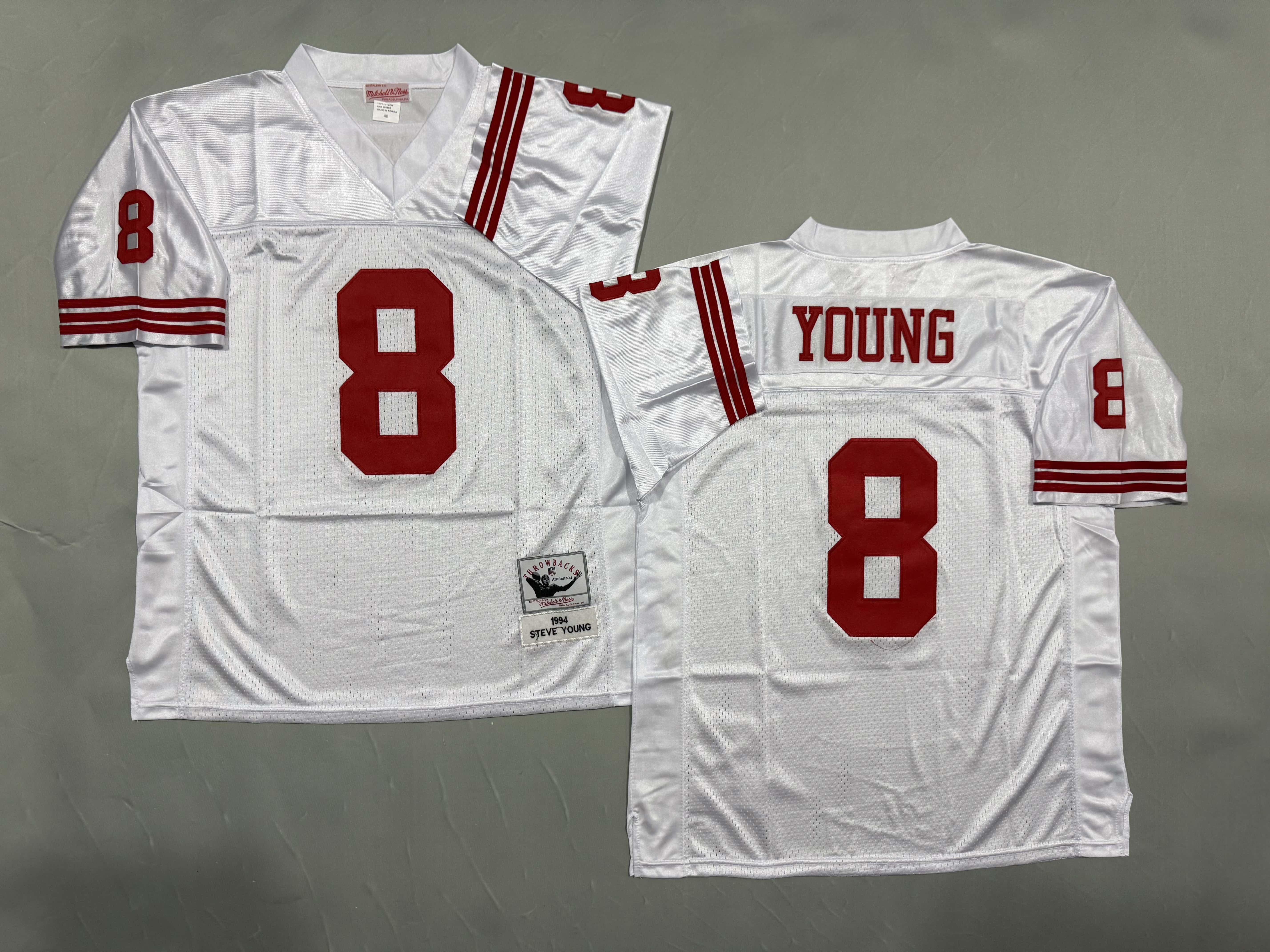 Men's & Youth San Francisco 49ers #8 Steve Young 1994 Mitchell & Ness White Authentic Throwback Retired Player NFL Jersey