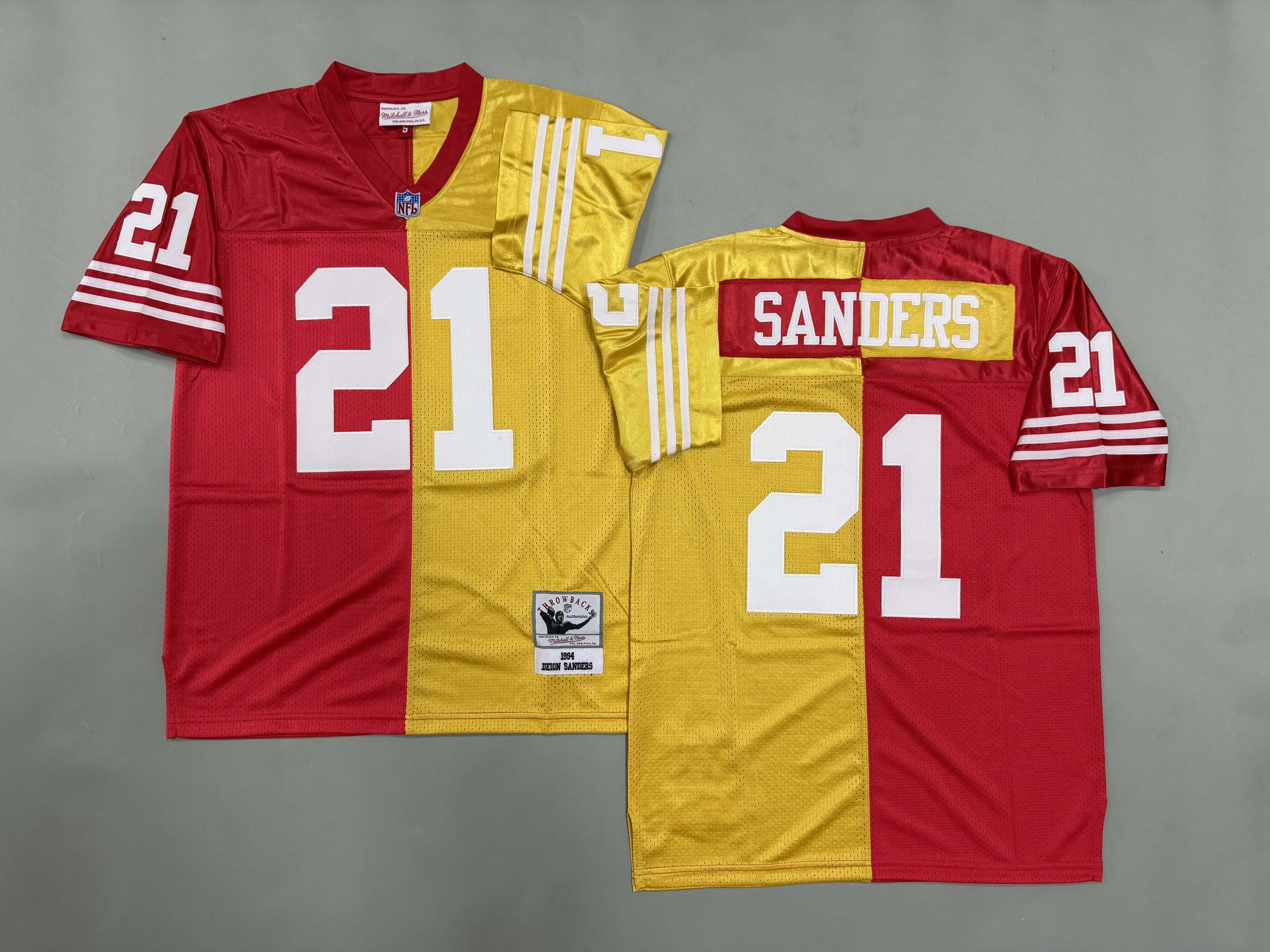 Men's & Youth San Francisco 49ers #21 Deion Sanders Mitchell & Ness Throwback NFL Jersey Gold Red