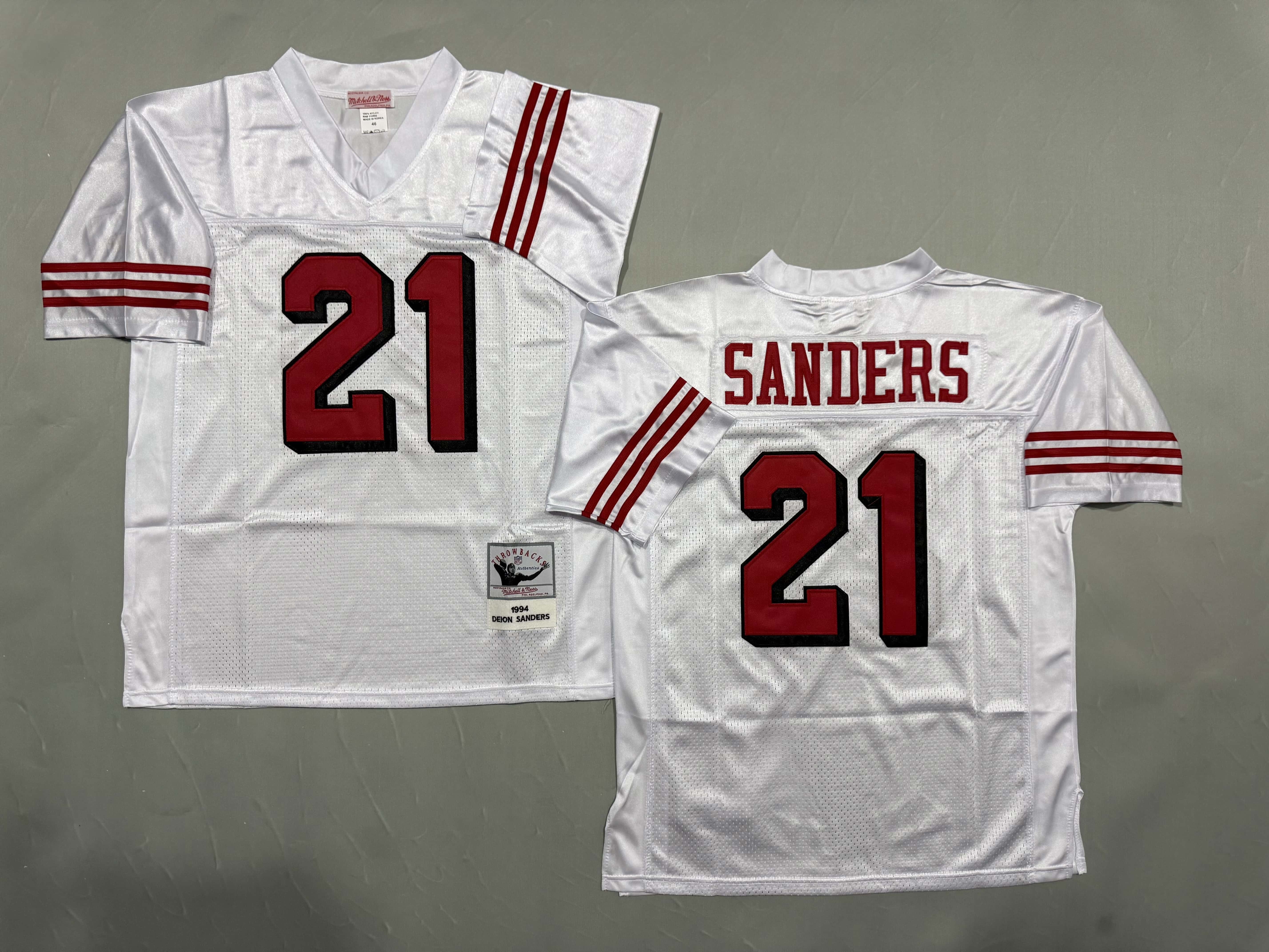 Men's & Youth San Francisco 49ers #21 Deion Sanders Mitchell & Ness Throwback NFL Jersey White